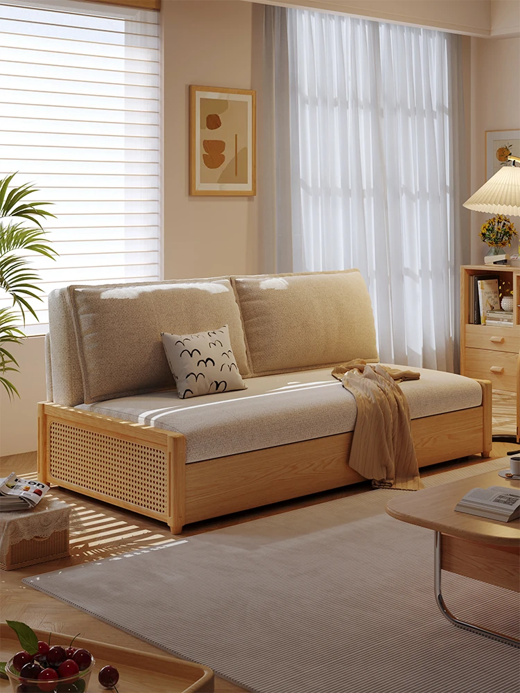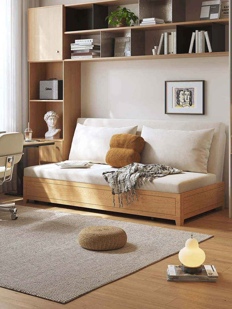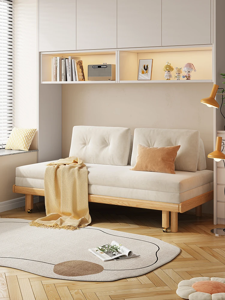 HE木屋メープル無垢材ソファベッド 折りたたみ可能でクリームカラーの北欧スタイル 伸縮式リビング兼用ダブルベッド 新デザイン登場!居心地抜群で、どんなインテリアにもぴったり。