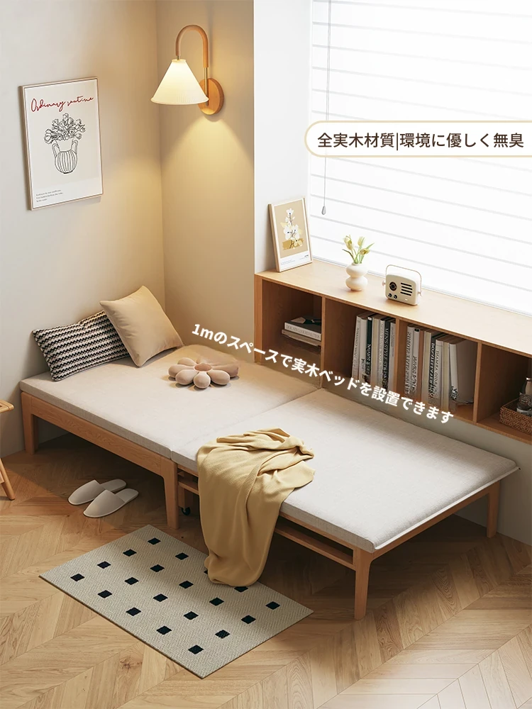 北欧風・折りたたみ式2wayソファベッド - 日本製の高品質無垢材使用!小スペースに最適、機能的でスタイリッシュなリビングにぴったりの多機能伸縮式ソファベッドです。あなたの快適な生活をサポートします!