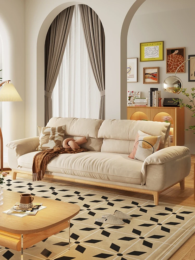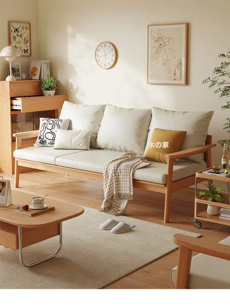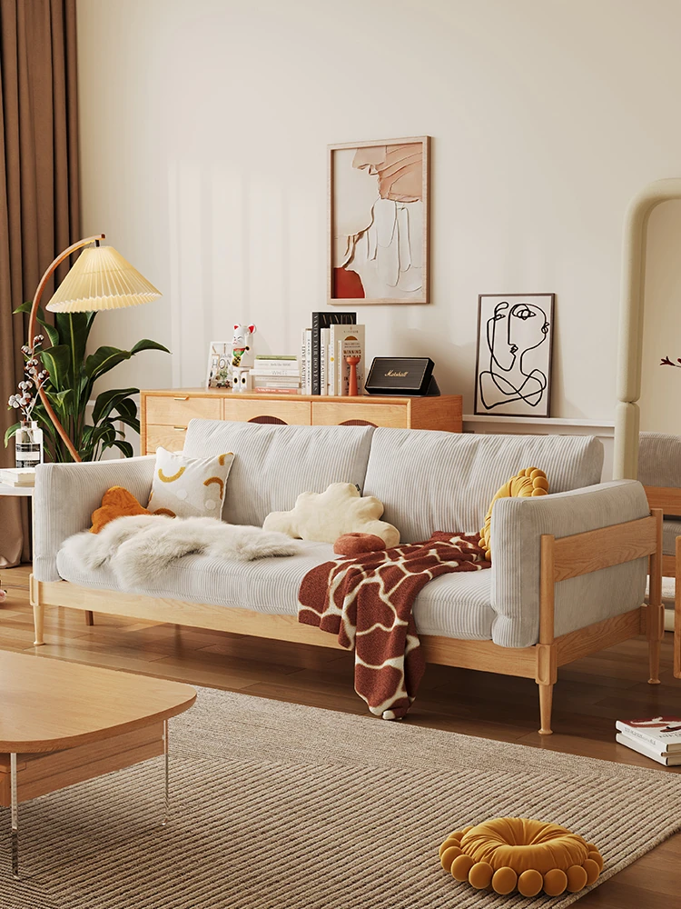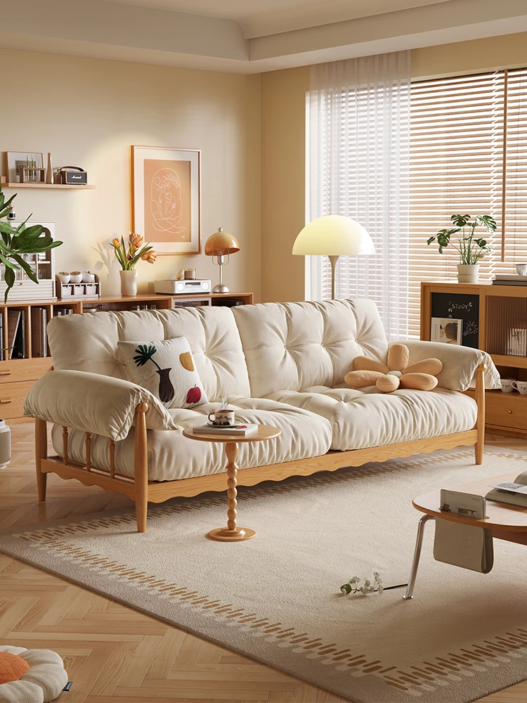 夢のような木の家の雲ソファ!日本の原木スタイルの小型リビングにぴったり。クリーミーな布地の実木ソファベッドで、居心地の良い空間を演出します。おしゃれで機能的なデザイン!