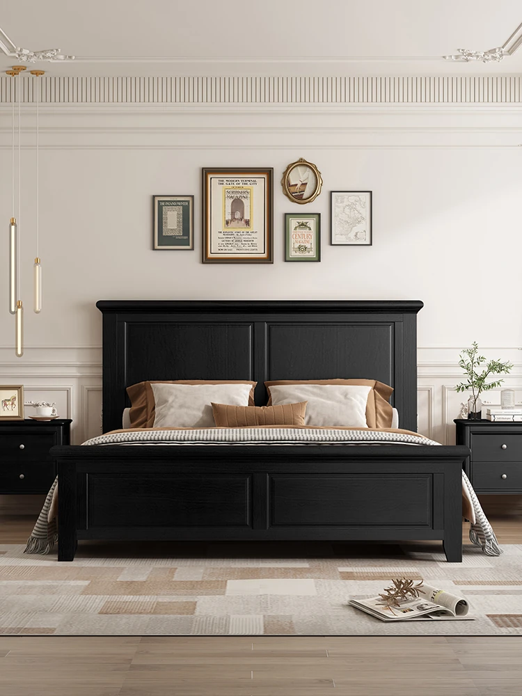 宮廷スタイルのフレンチビンテージソフトパッキングベッド、モダンでシンプルな黒色の1.8mアメリカンスタイルダブルベッド。主寝室にぴったりの高級感あふれるデザインで、優雅な眠りをお楽しみください!