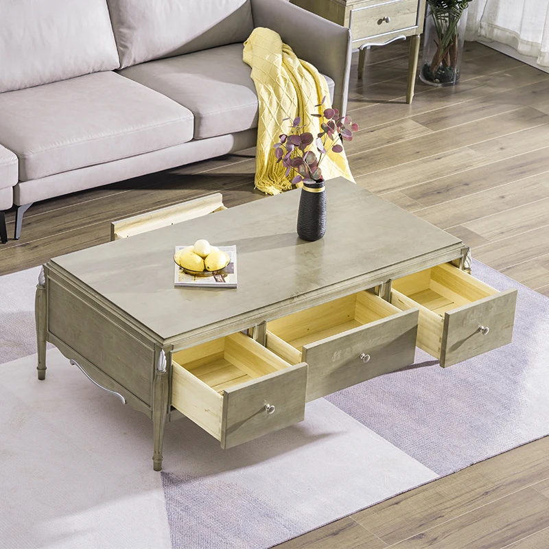 全実木の軽奢華シンプルリビングテーブル 小型アメリカンカントリースタイル収納付き長方形ティーテーブル