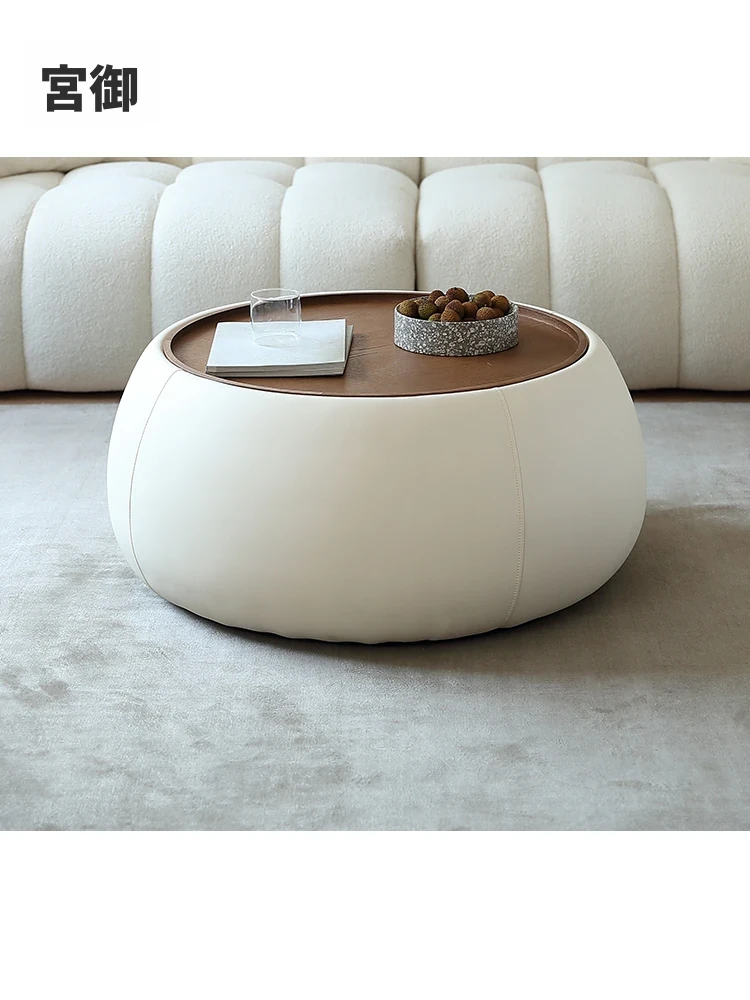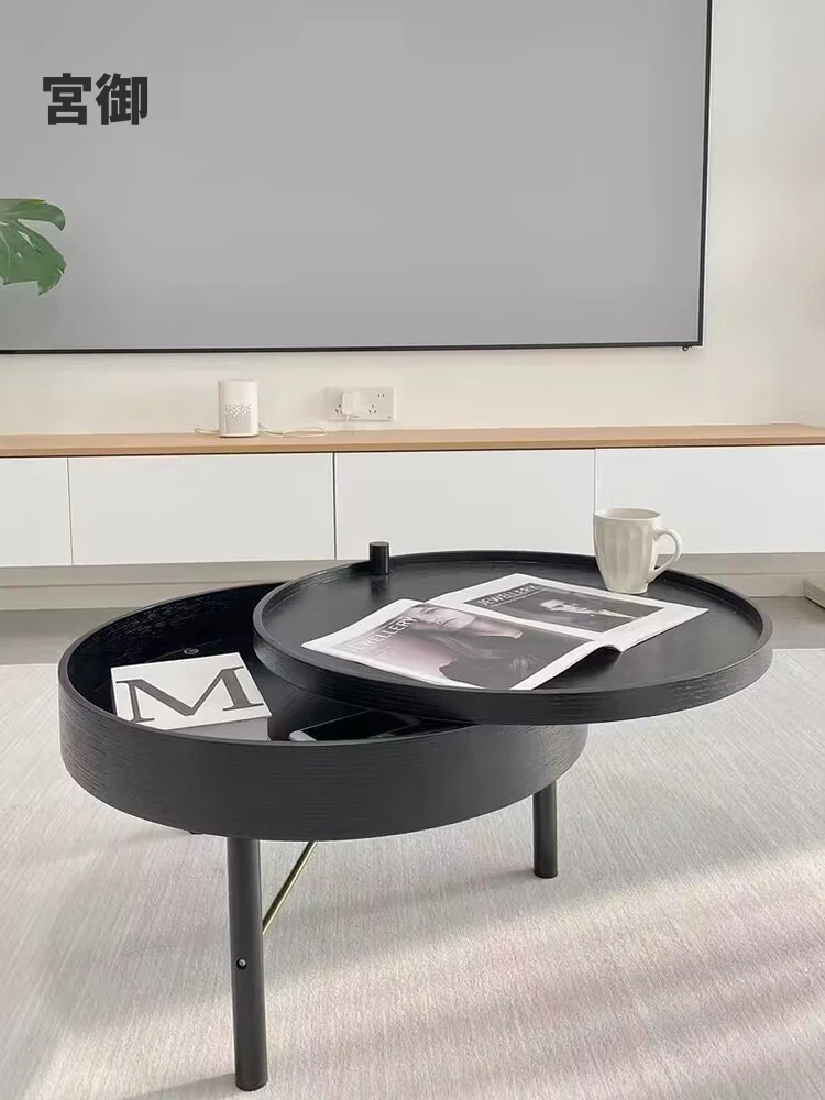 宮廷風の回転式無垢材ラウンドコーヒーテーブル|小型住宅に最適なシンプルでモダンな収納デザイン|ミニマリストの侘び寂びスタイルのリビングにぴったり!