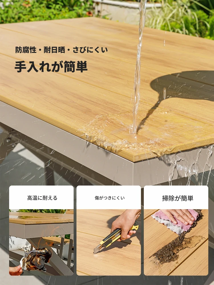 アウトドアテーブル&チェアセット - 腐食防止プラスチックウッド製、庭やバルコニーに最適なリラックスダイニングテーブル&チェア。おしゃれなガーデンライフを楽しむための必需品!