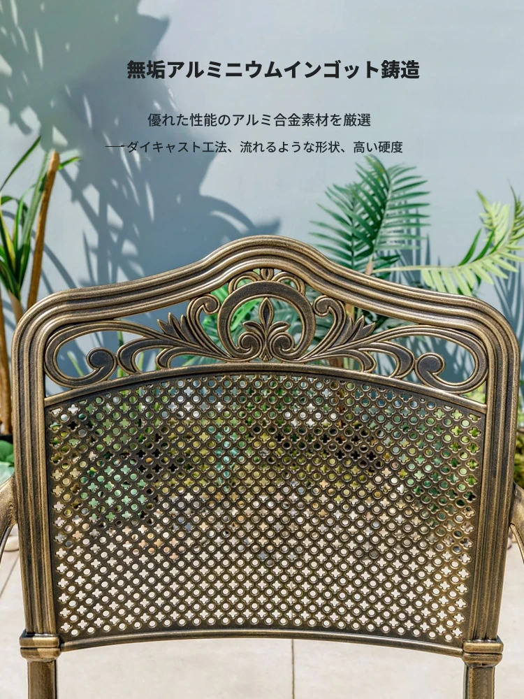 アウトドア用アルミ鋳物テーブル&チェアセット|庭やバルコニーに最適な欧風デザイン|リラックスしたひとときを演出する高品質アイテム|おしゃれな別荘スタイルを手軽に実現!