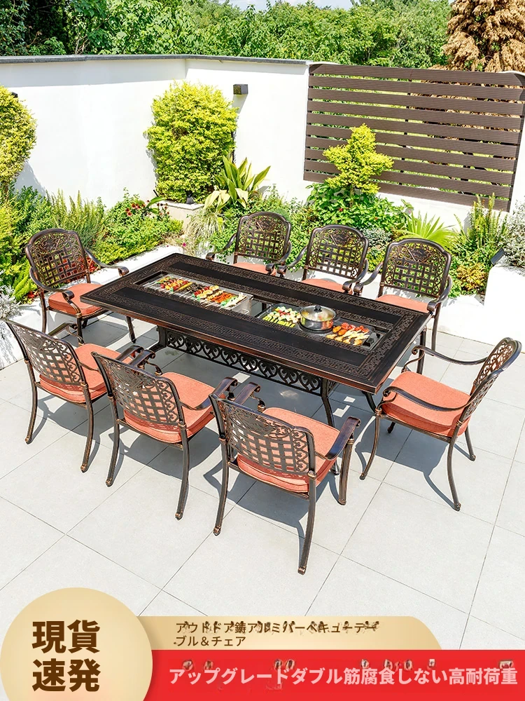 アウトドア用アルミ鋳造バーベキューテーブル&チェアセット - 欧風デザインの庭やバルコニーにぴったり!リラックスできる花園用のアイアンテーブル、耐久性に優れた屋外用家具。楽しいひとときをお過ごしください!