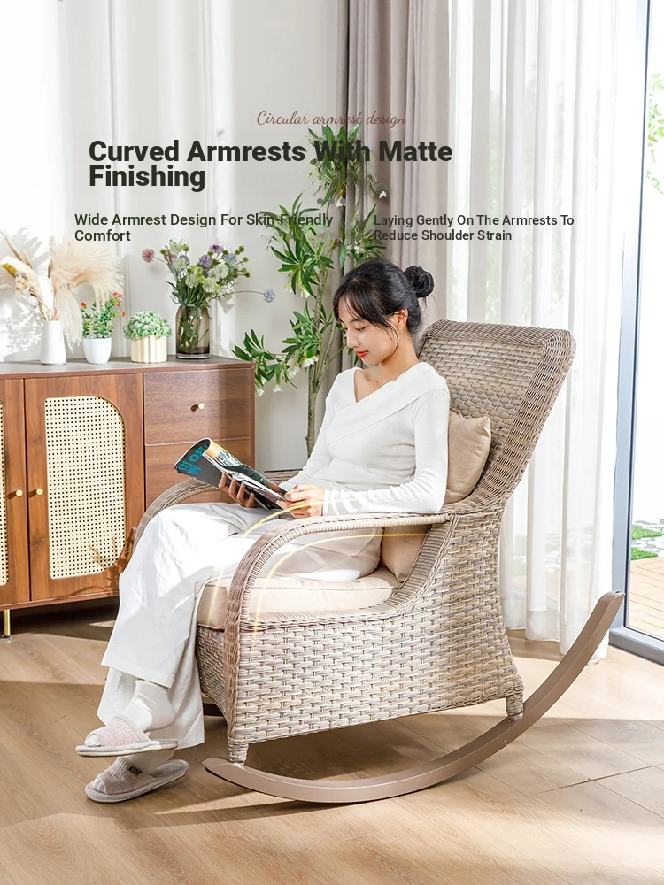 Lounge Rocking Chair - Versatile Rattan Recliner for Home Use, Perfect for Adults. Enjoy Relaxation with this Stylish Single Sofa Chair Ideal for Nordic Balconies and Cozy Spaces.