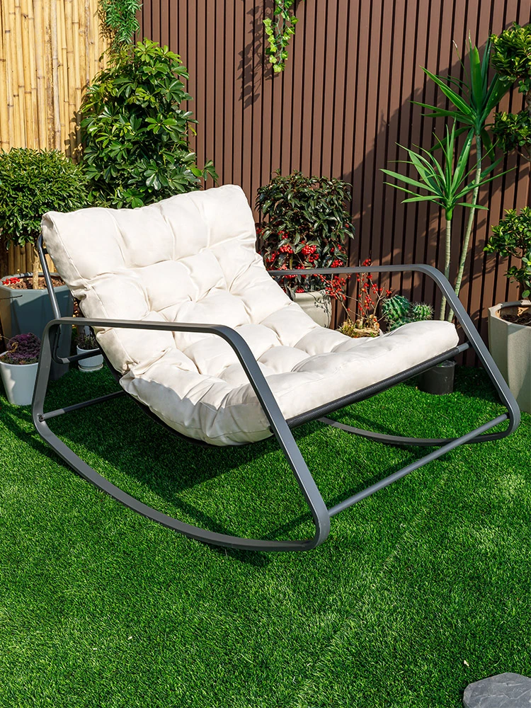 Outdoor Rocking Chair for Balcony - European Style Iron Lounge Chair for Home, Perfect for Relaxing in Your Garden or Patio, Ideal for Napping and Leisure Time, Single Seat Lazy Chair