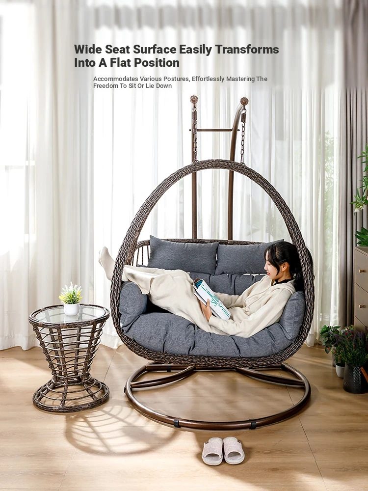 Double Rattan Hanging Chair for Two - Stylish Indoor Swing Hammock with Dual Poles, Perfect for Balconies and Living Rooms - Trendy Lazy Cradle Chair for Ultimate Comfort!