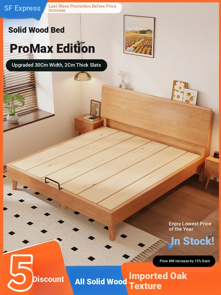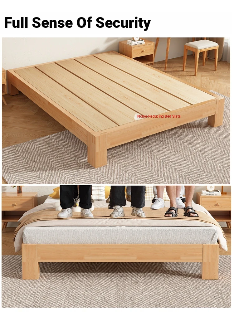 2024 New Solid Wood Bed for Home - Double Size, Space-Saving Design without Headboard, Slatted Frame Tatami Bed for Small Bedrooms