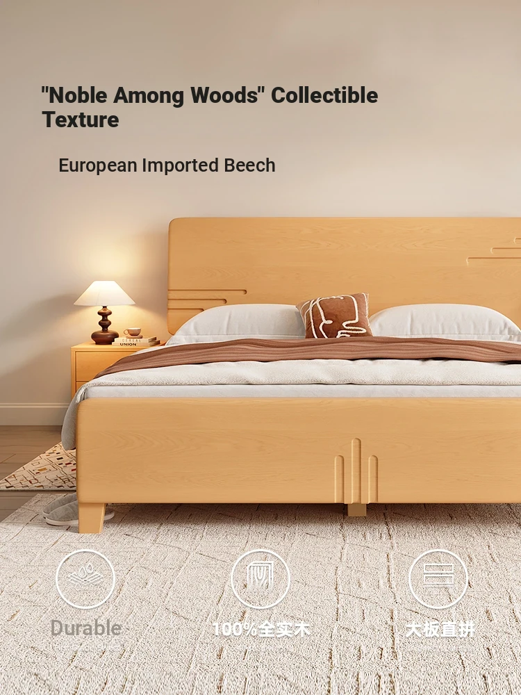 Modern Minimalist Solid Wood Bed for Home - High-End Beech Wood Double Bed (1.8m) & Single Bed Frame (1.2m) - Perfect for Master Bedrooms!