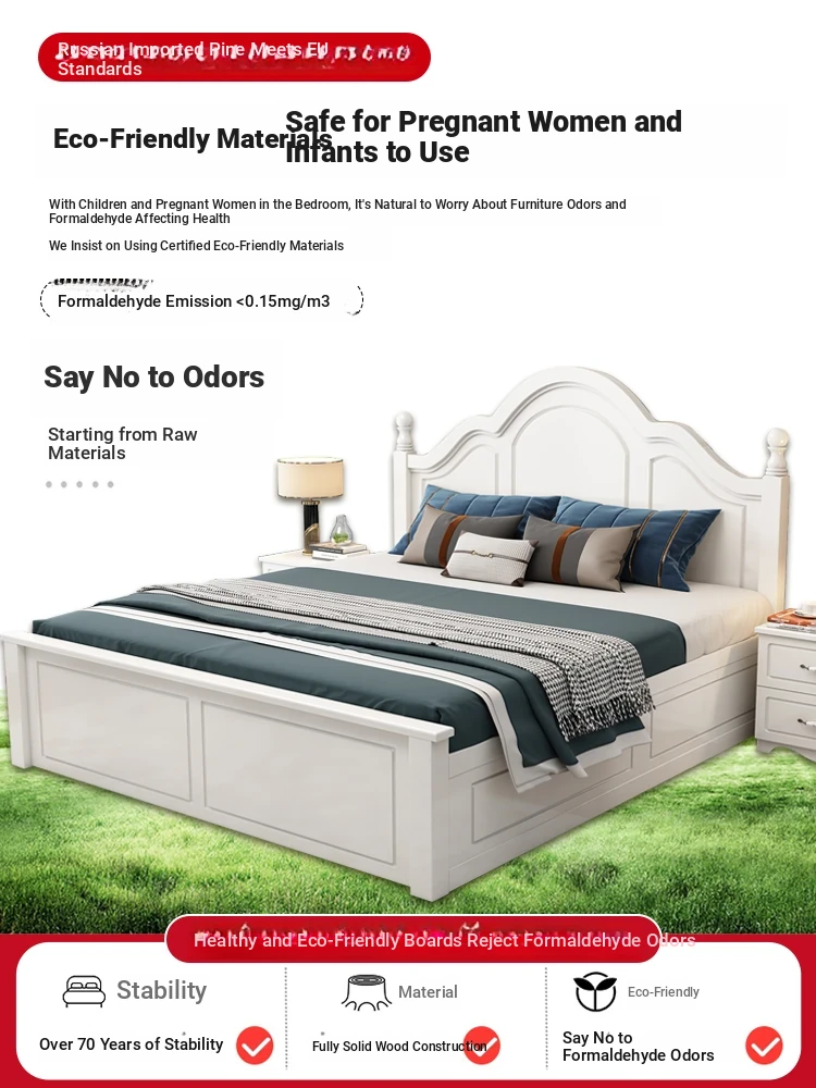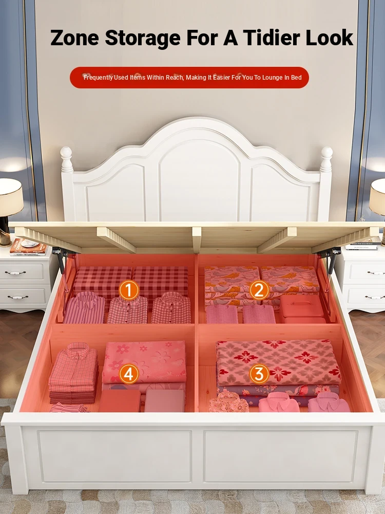 XiHe American Style Solid Wood Queen Bed - Modern Minimalist Storage Bed in White, Available in 1.5m and 1.8m for Your Master Bedroom – Perfect Blend of Elegance and Functionality!