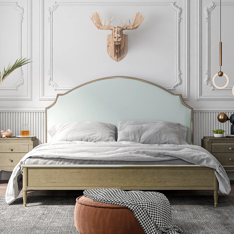 Xihe American-Style Luxury Solid Wood Upholstered Bed - 1.8m Modern Minimalist Double Bed for Master Bedroom Furniture