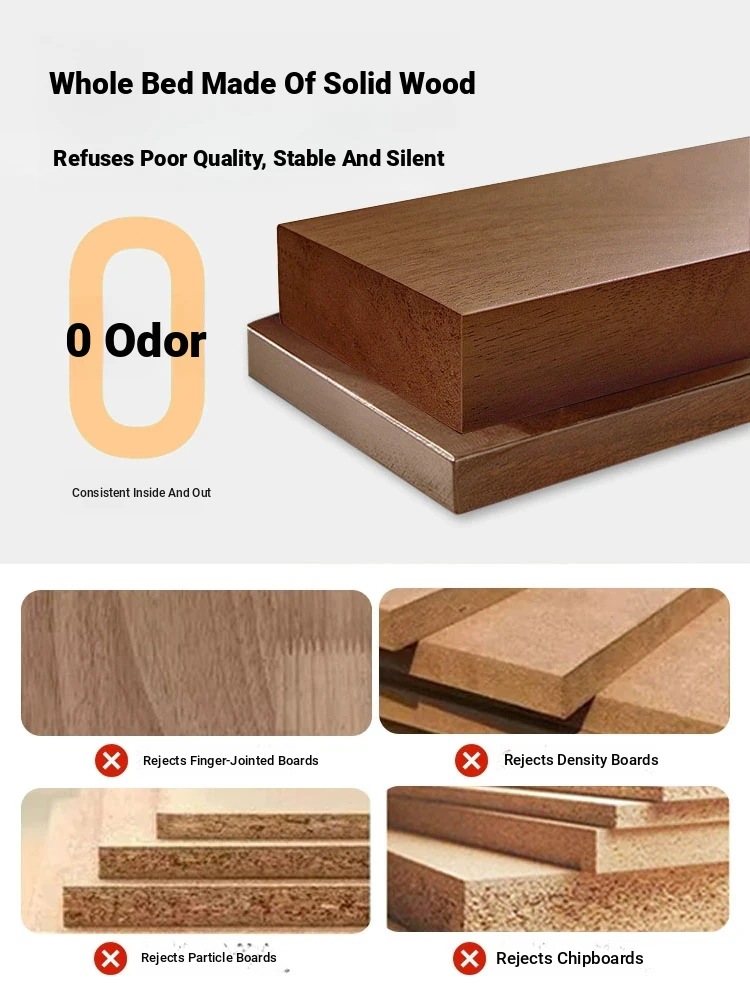 Elegant Modern Solid Wood Bed - 1.5m Walnut Double Bed for Master Bedroom & 1.8m Full Solid Wood Single Bed Frame - Perfect for Home Decor!