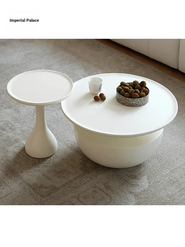 Elegant White Mushroom Coffee Table - Creative Designer Piece for Modern Living Rooms, Perfect for Small and Large Spaces, Featuring Unique Creamy Aesthetic and Versatile Shape Combinations.
