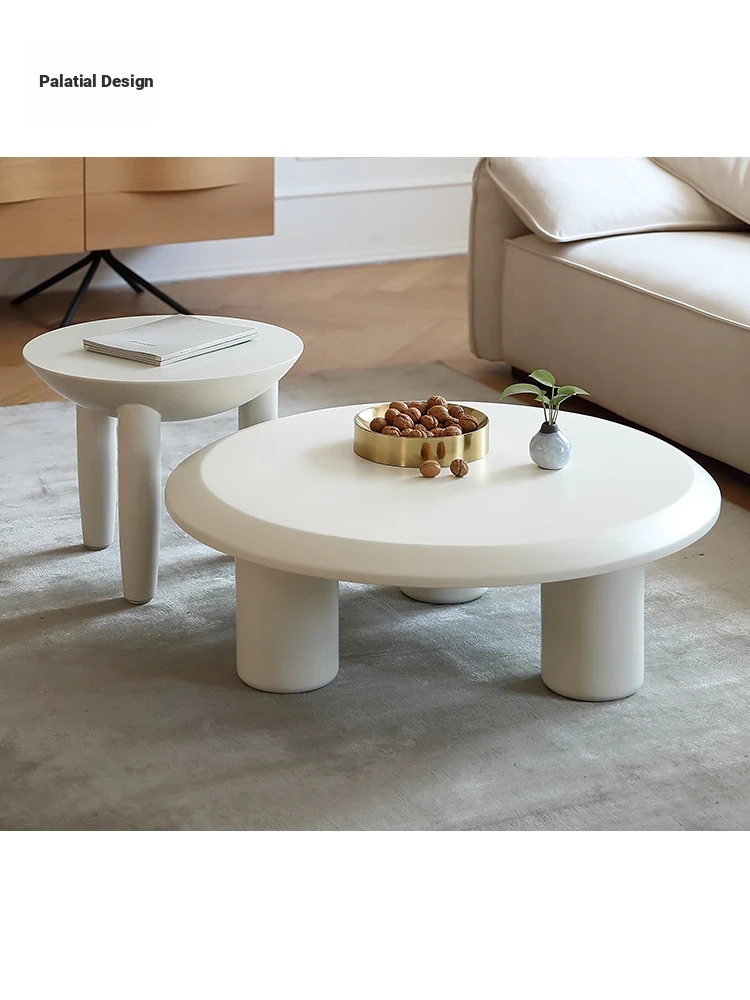 Elegant Italian Minimalist Round Wooden Coffee Table Set with Cream Finish - Perfect for Small Spaces and Trendy Living Rooms