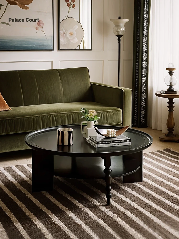 Vintage French Style Solid Wood Round Coffee Table - Elegant Black Design for Small Living Rooms - New 2025 Collection