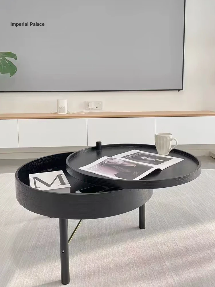 Elegant Rotating Solid Wood Round Coffee Table - Modern Minimalist Design for Small Spaces with Storage - Perfect for Your Living Room in Wabi-Sabi Style