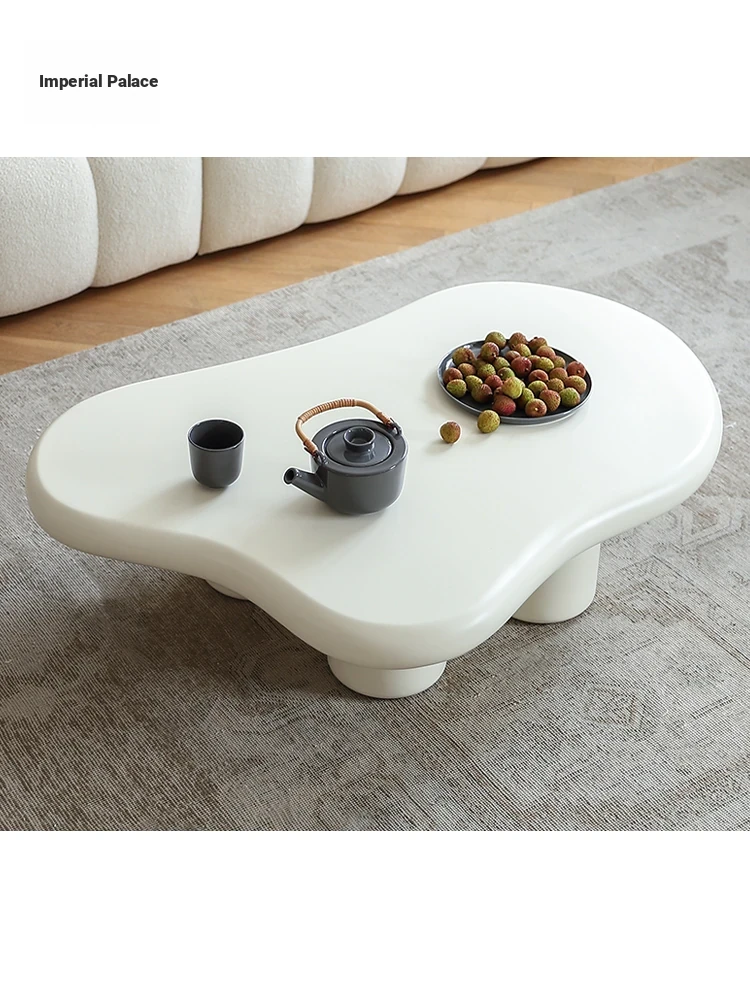 Elegant French-Inspired Designer Cloud-Shaped Coffee Table - Creamy White Modern Accent for Small Living Rooms, Perfect for Chic and Cozy Interiors