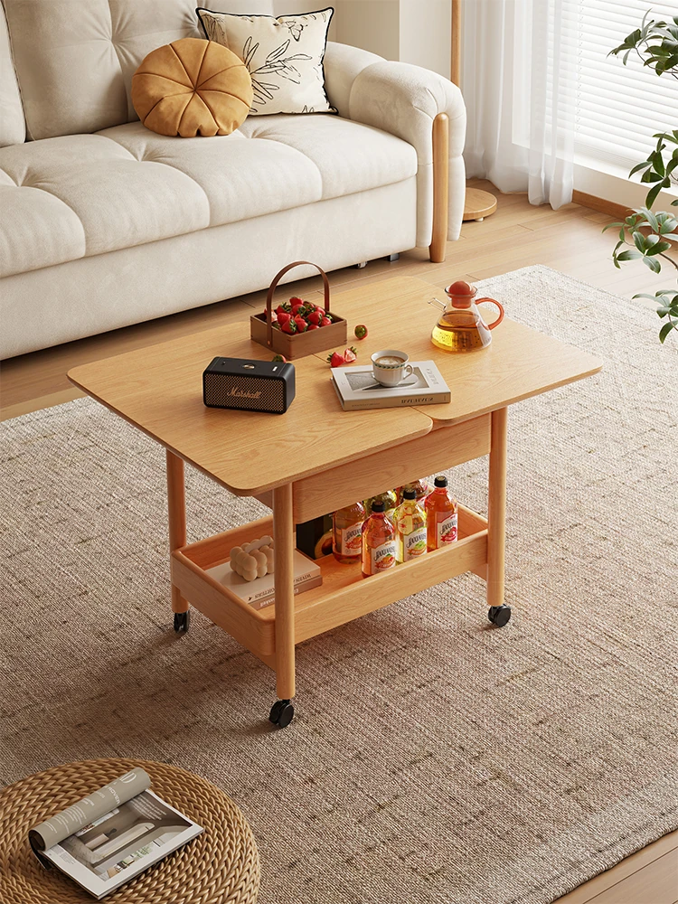 2024 New Compact Folding Coffee Table for Living Room - Minimalist Solid Wood Design, Perfect for Small Spaces