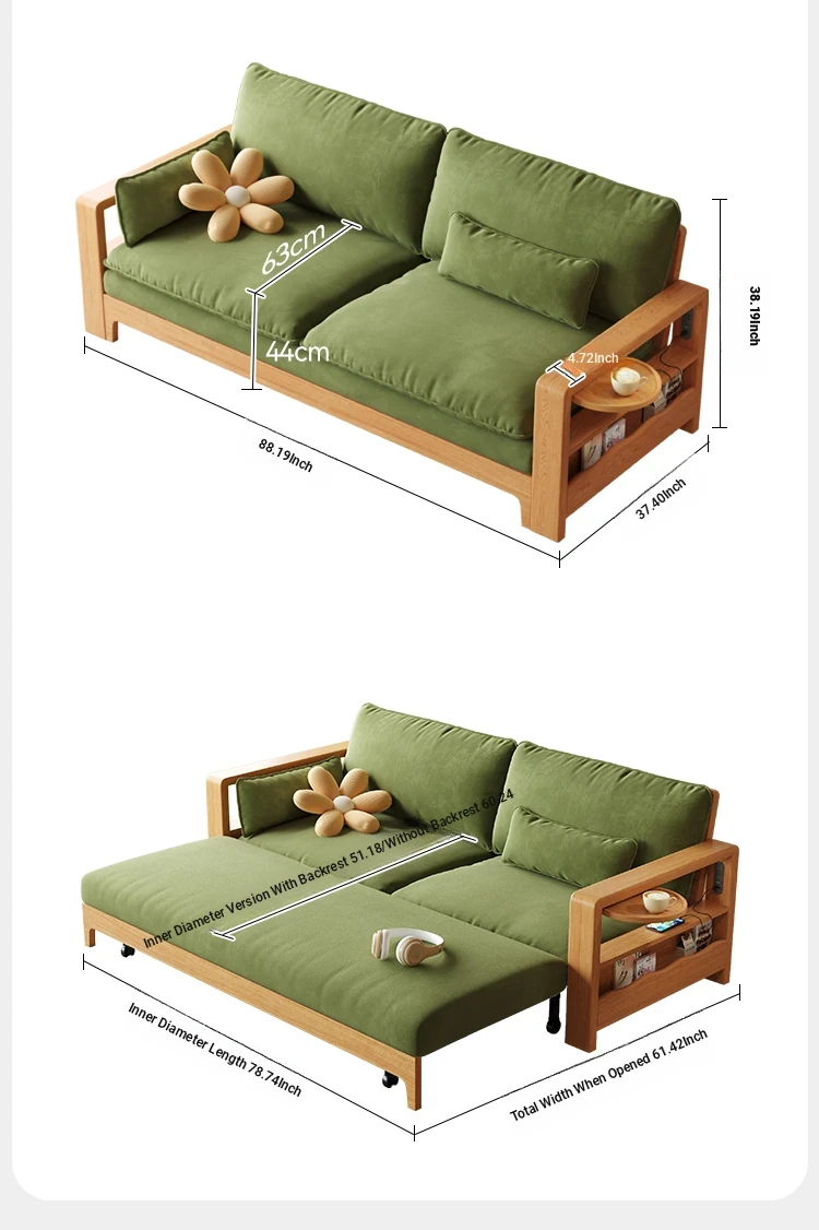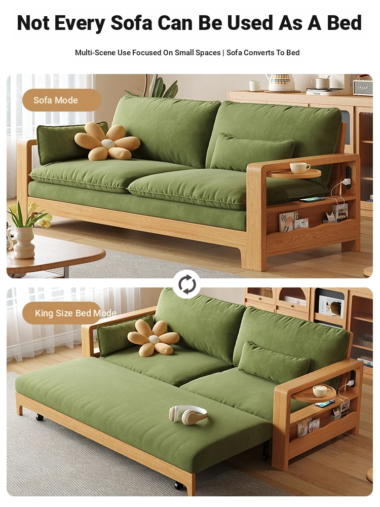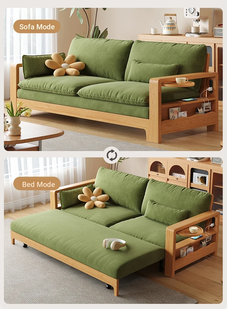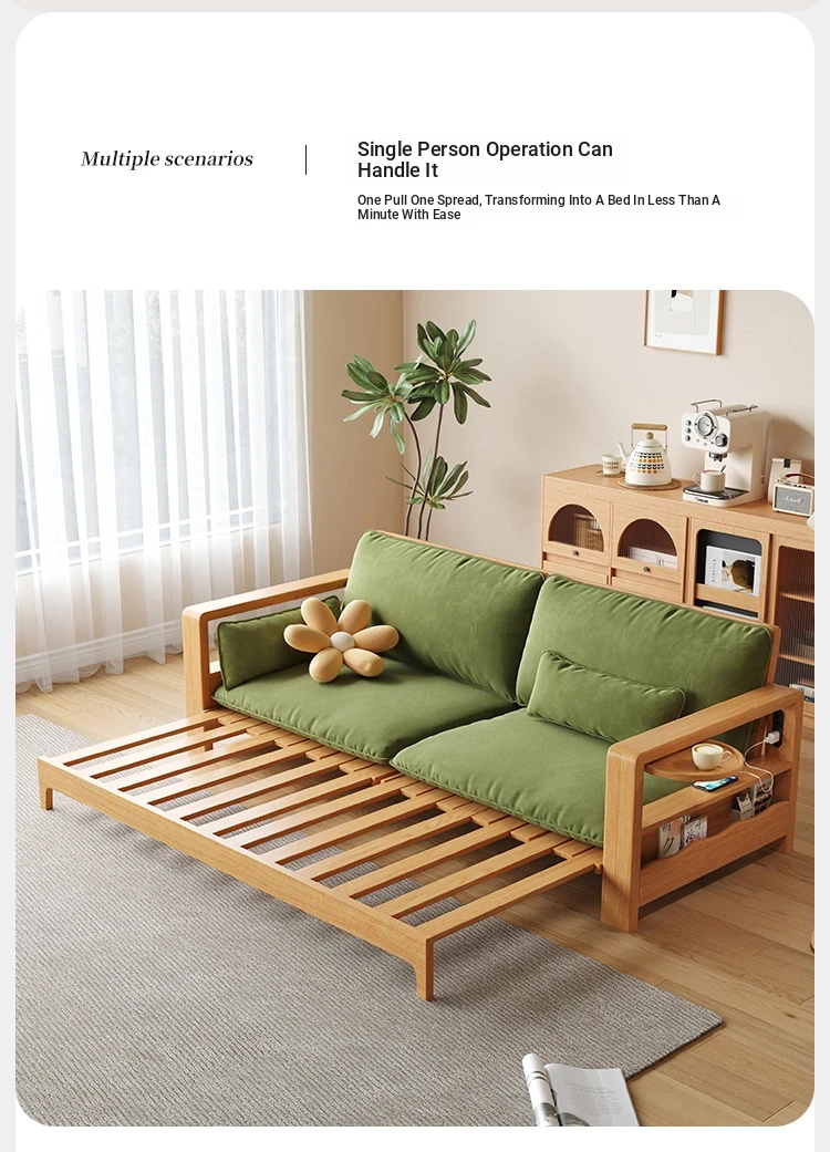 HE Wooden Cabin Rock Solid Wood Sofa Bed - Versatile and Foldable for Small Living Rooms, Scandinavian Style, New Double Bed Design in Natural Wood Finish