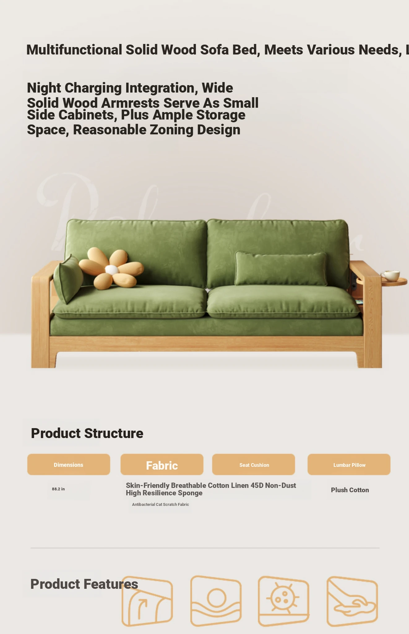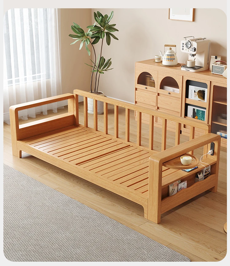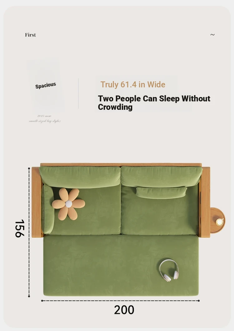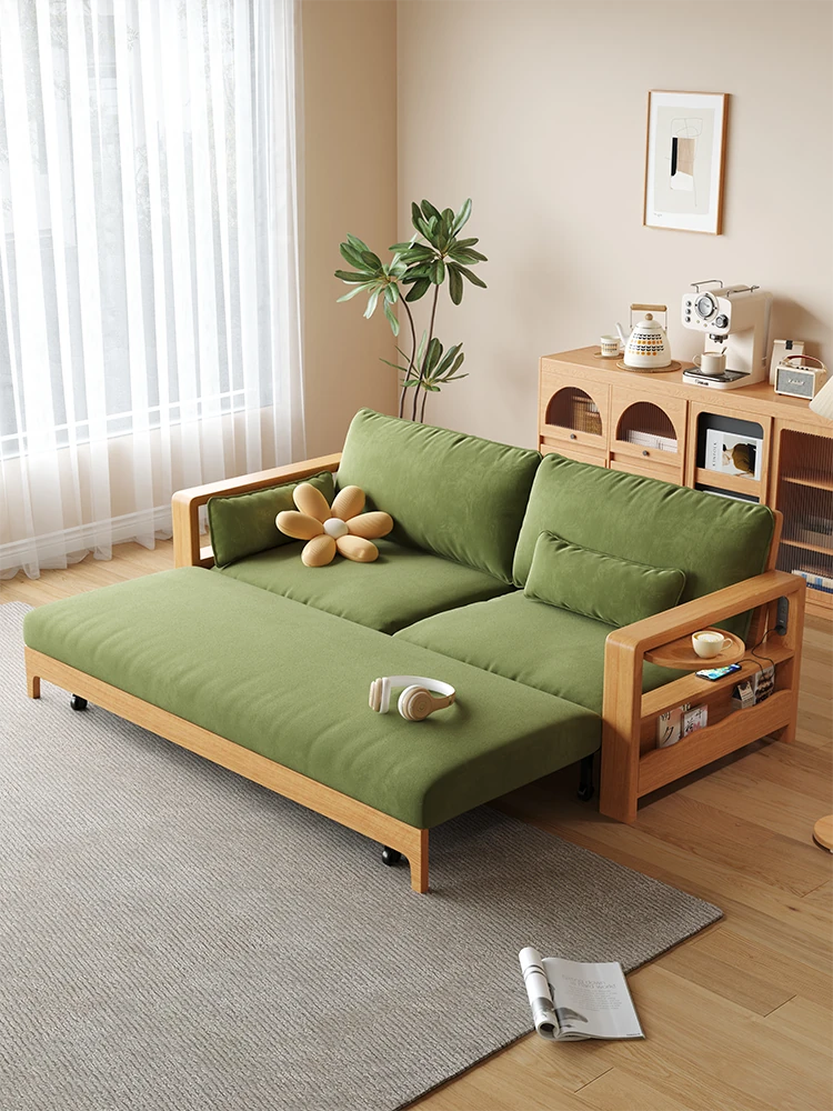 HE Wooden Cabin Rock Solid Wood Sofa Bed - Versatile and Foldable for Small Living Rooms, Scandinavian Style, New Double Bed Design in Natural Wood Finish