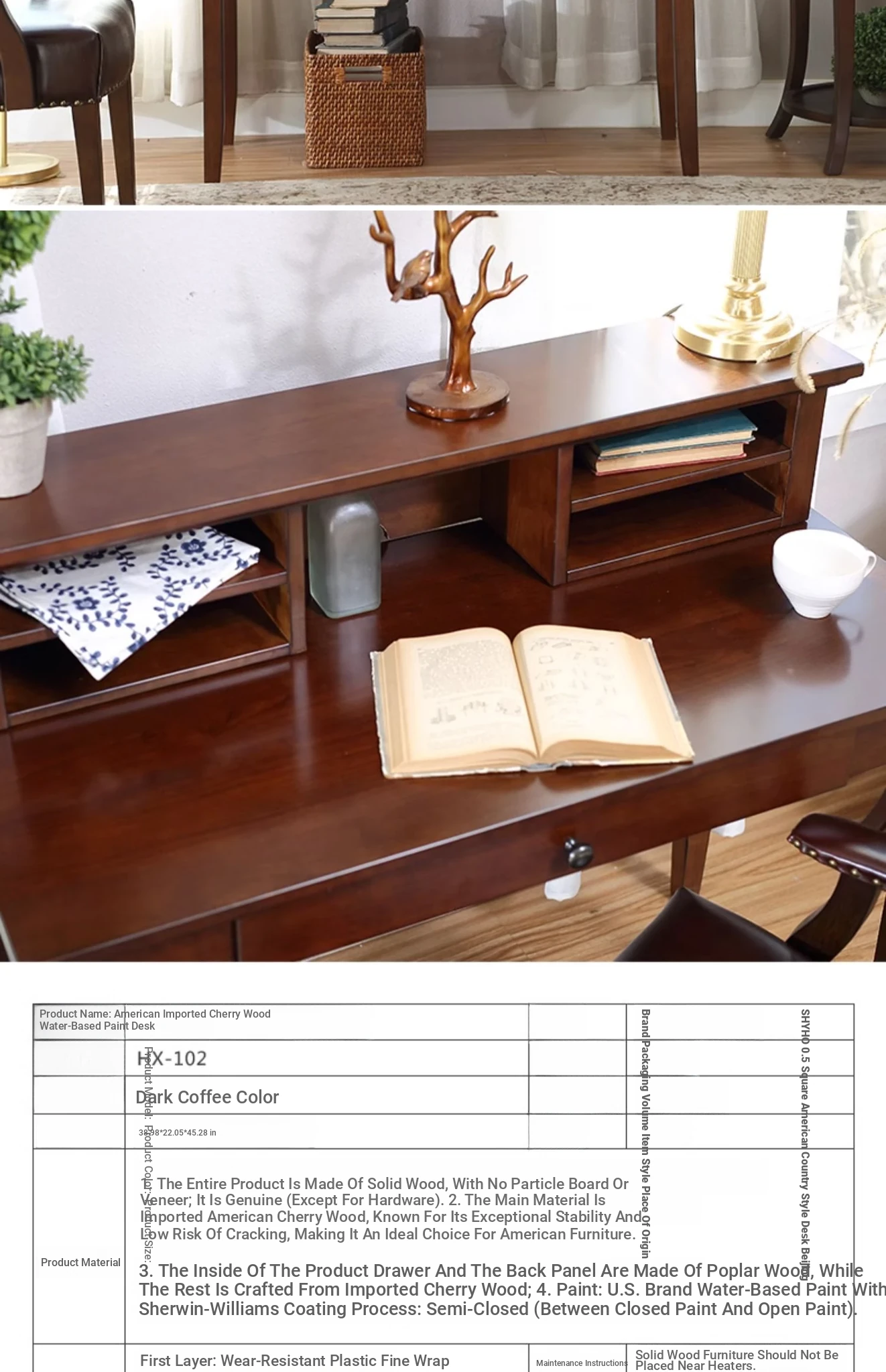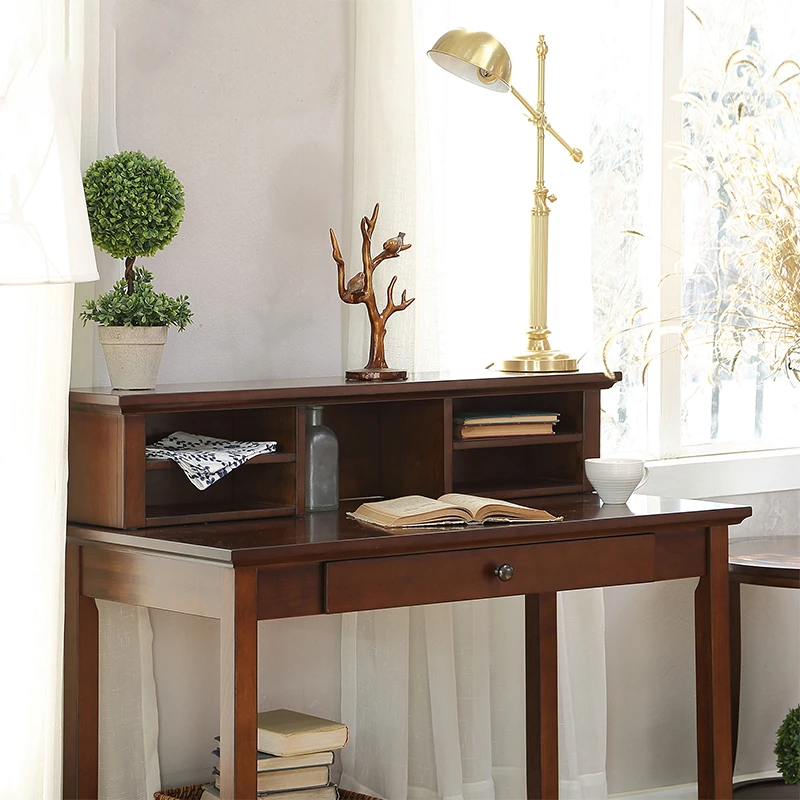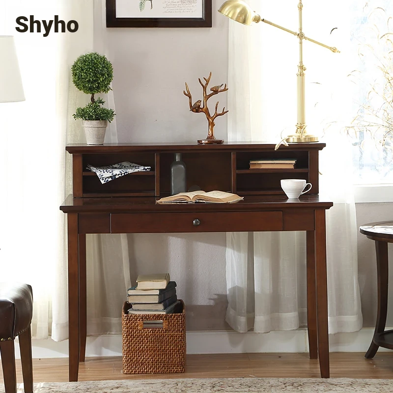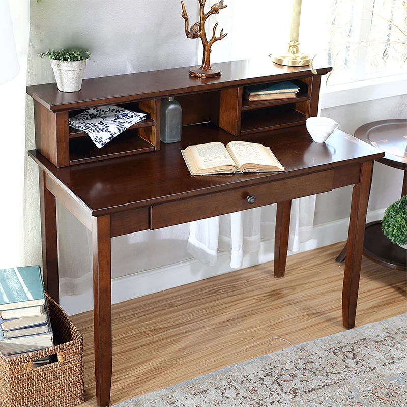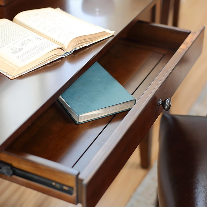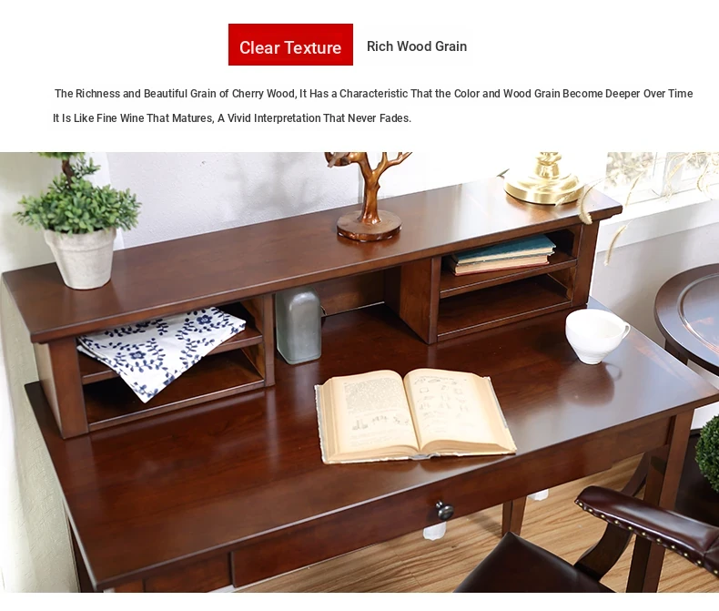 American Vintage Minimalist Solid Wood Desk and Bookshelf Set - Cherry Wood Home Office Writing Table and Study Desk