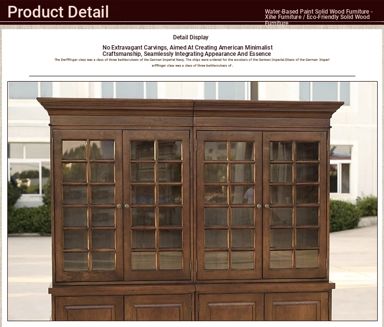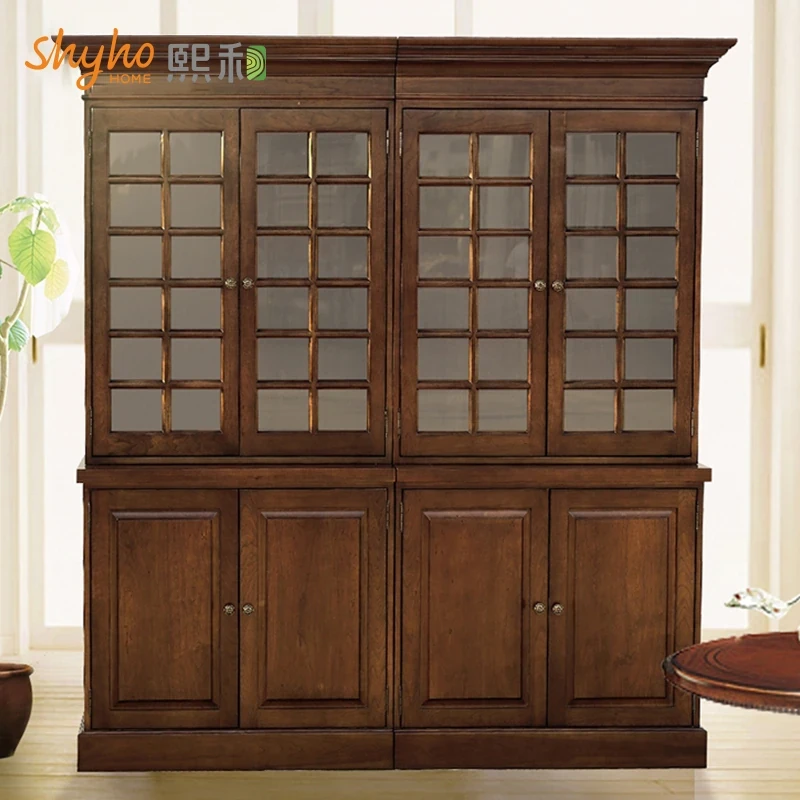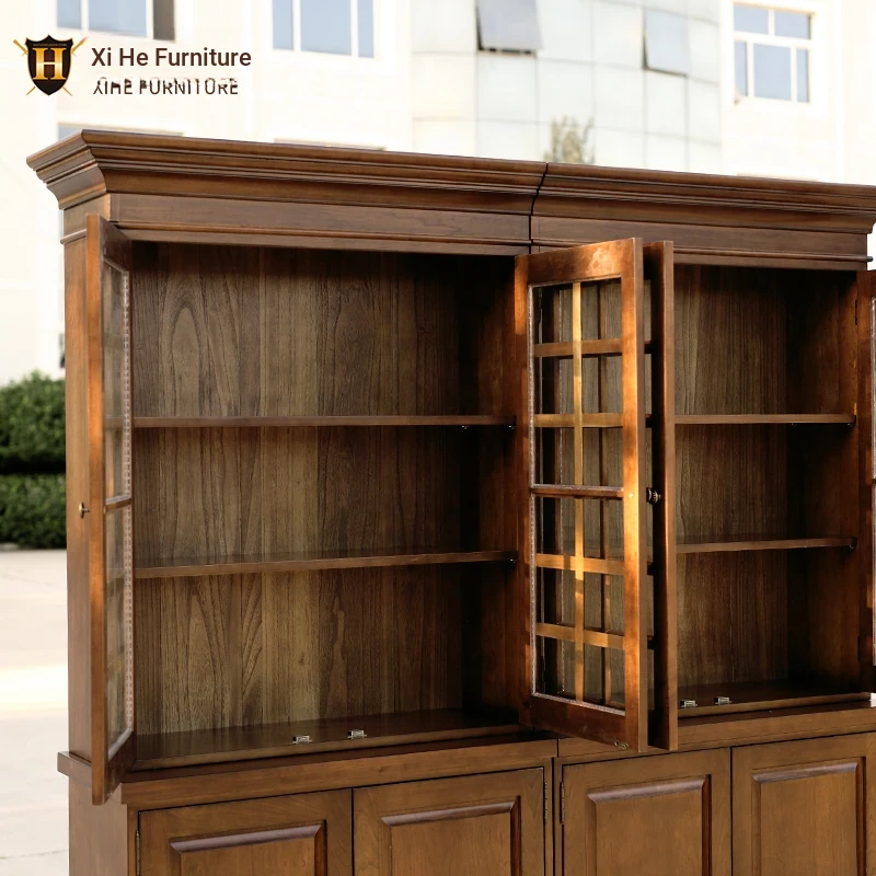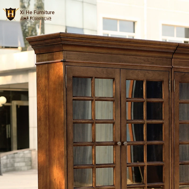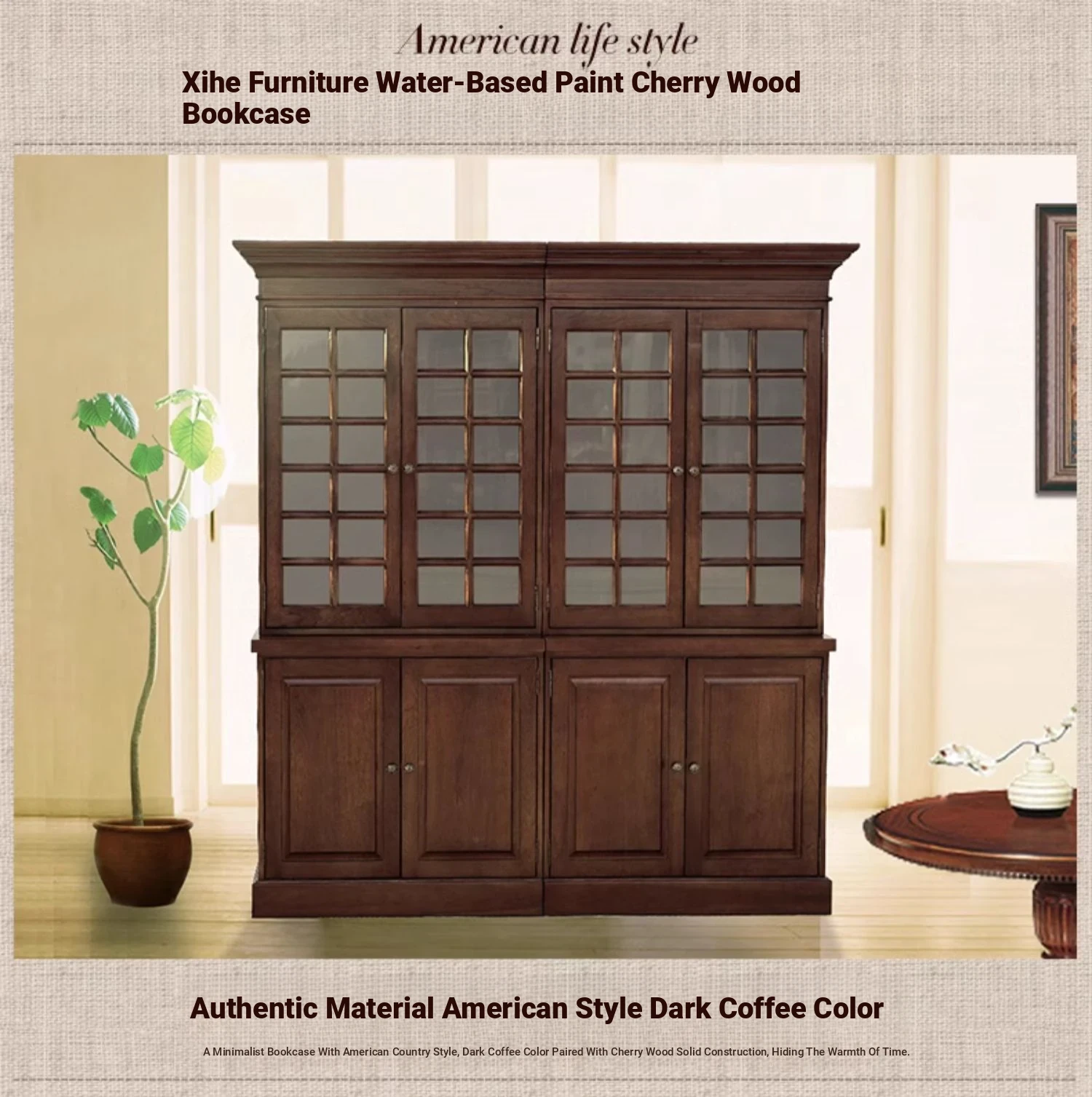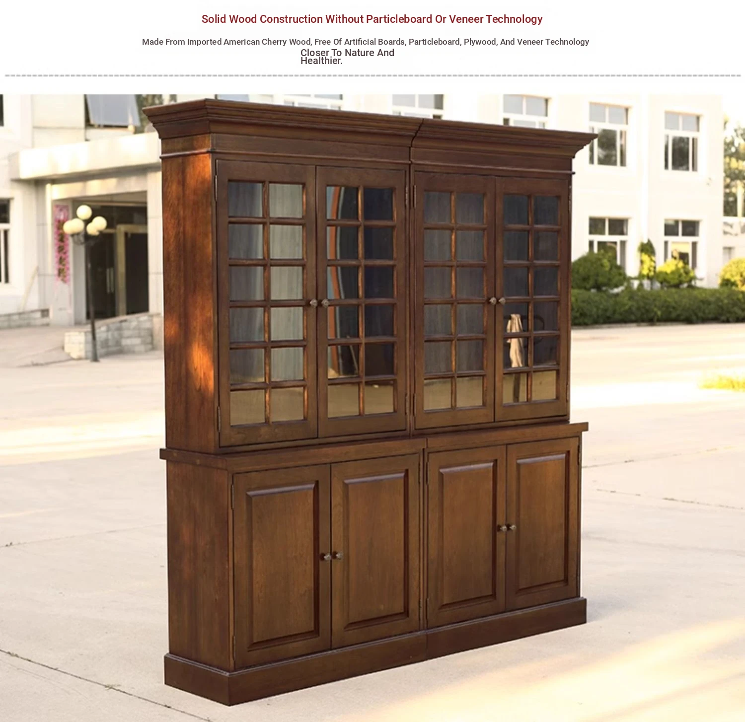 American Vintage Style Bookcase - Double Door Glass Combination Shelf for Living Room and Study - Cherry Water-based Paint Furniture
