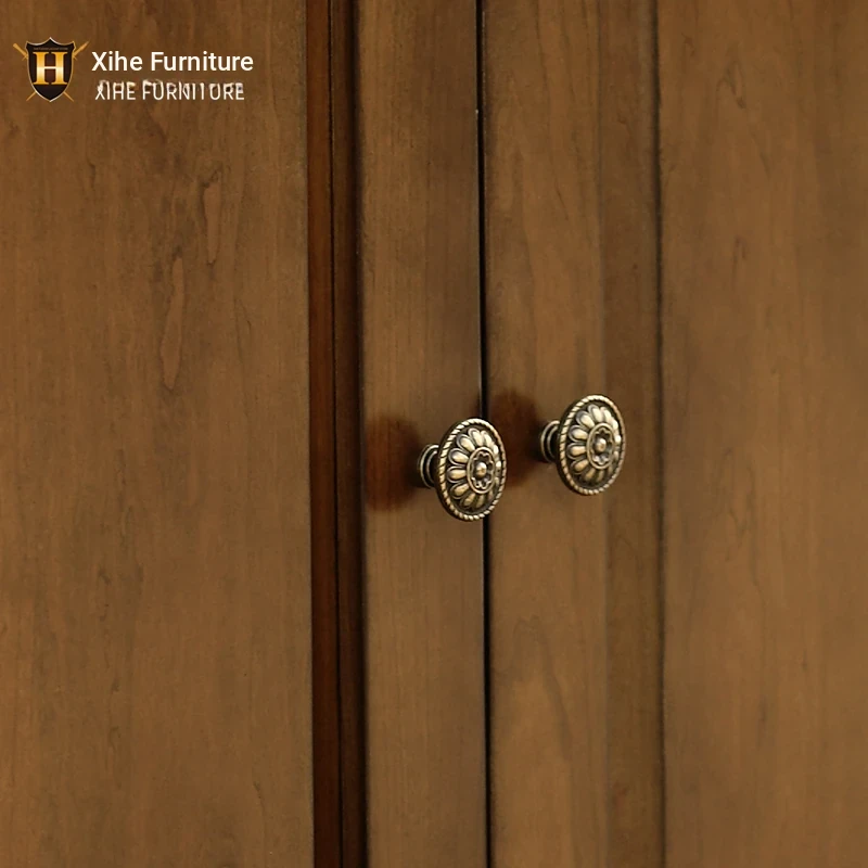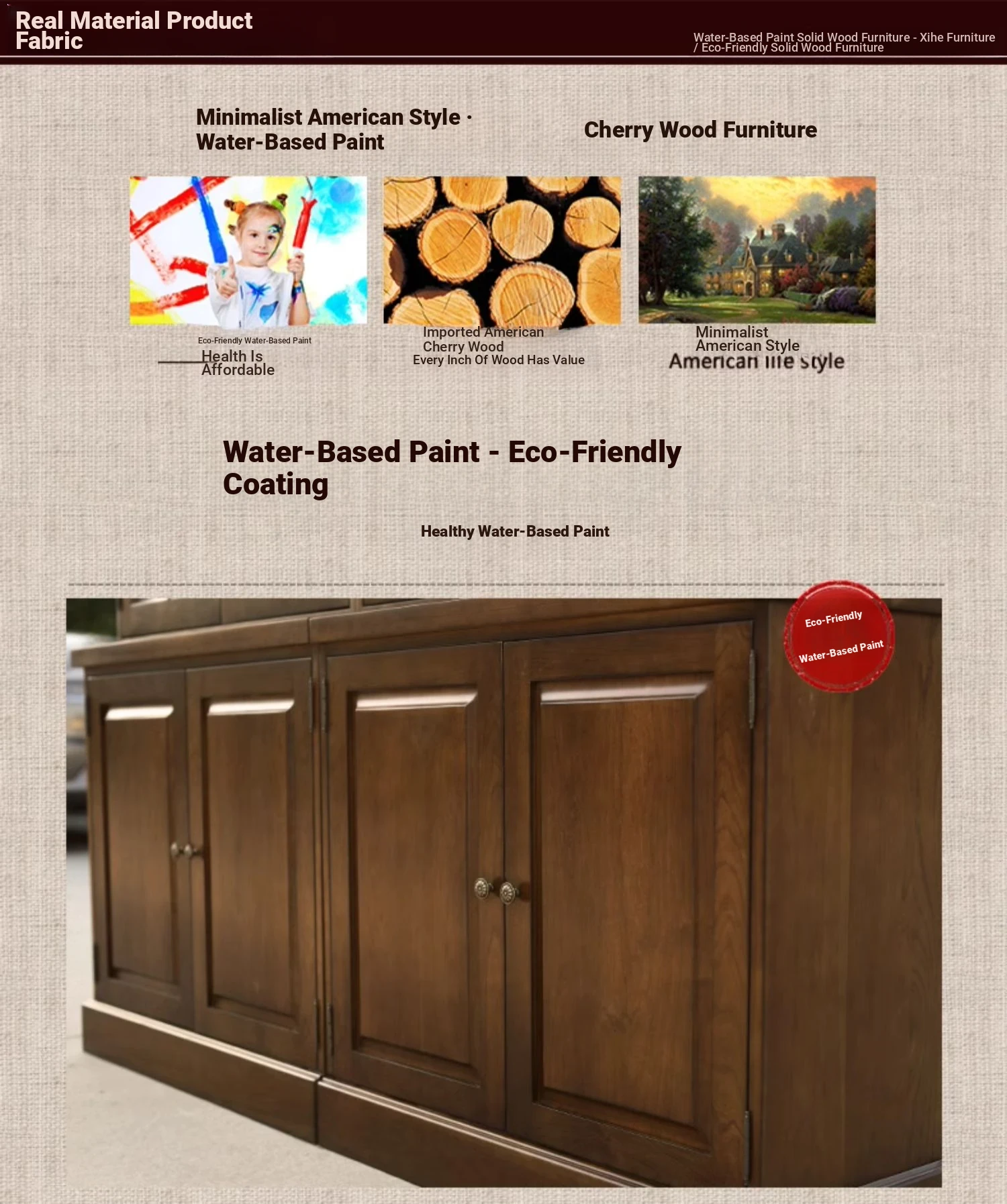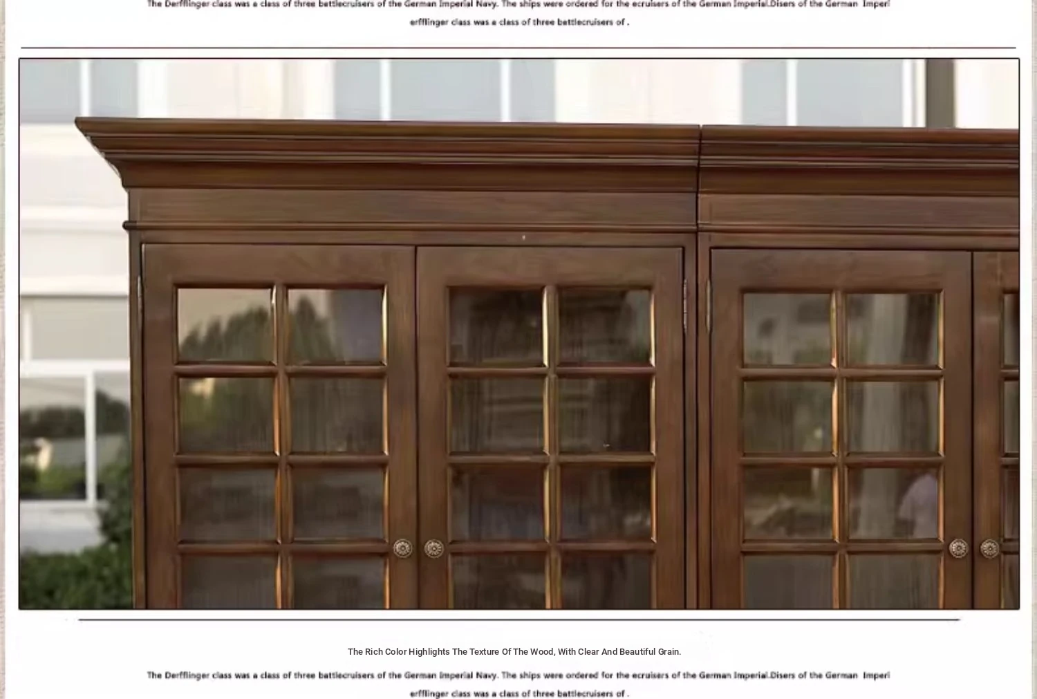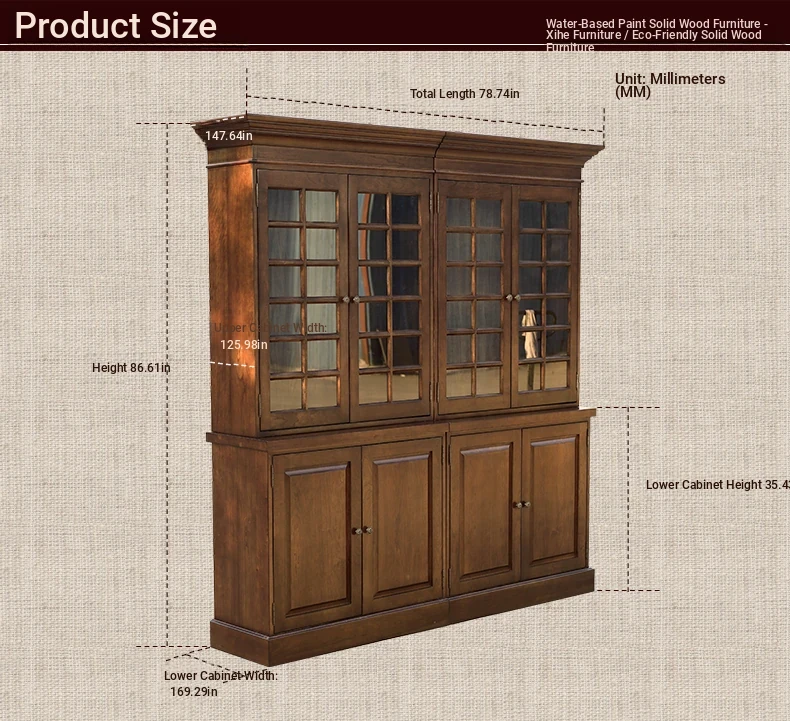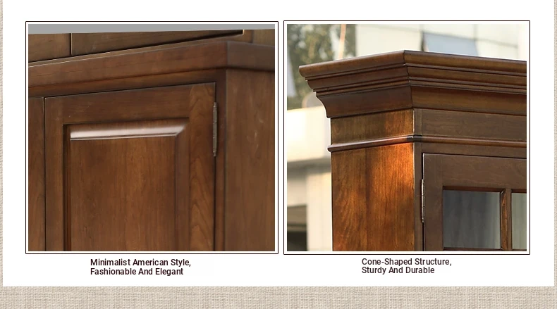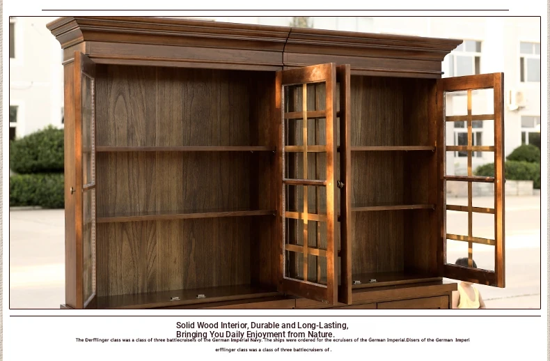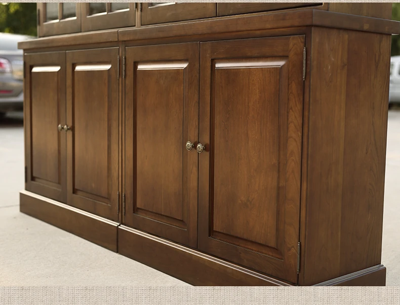American Vintage Style Bookcase - Double Door Glass Combination Shelf for Living Room and Study - Cherry Water-based Paint Furniture