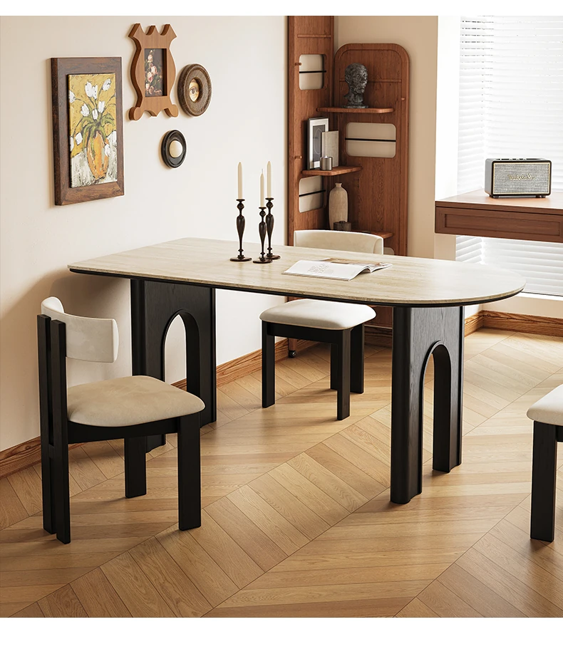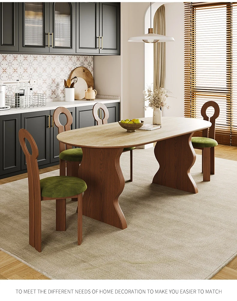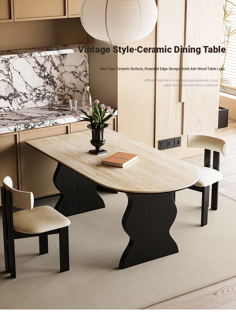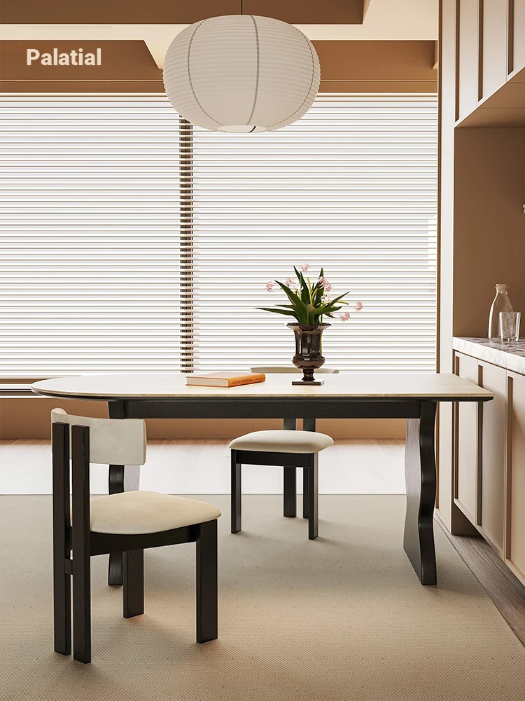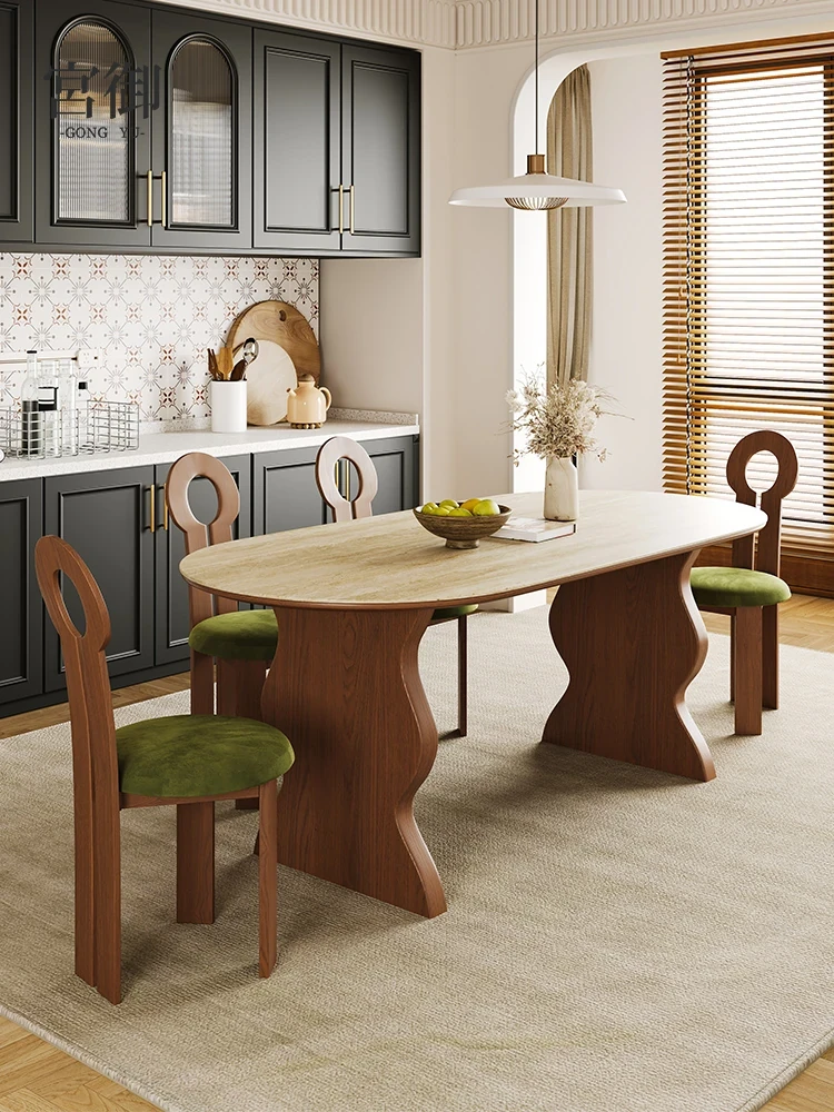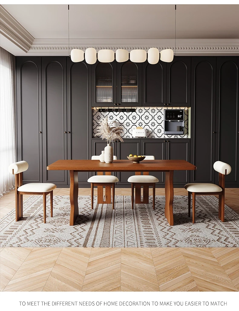 Elegant French Vintage Solid Wood Dining Table and Chair Set - Wabi-Sabi American Retro Cream Style for Small Spaces, Perfect for Home Use
