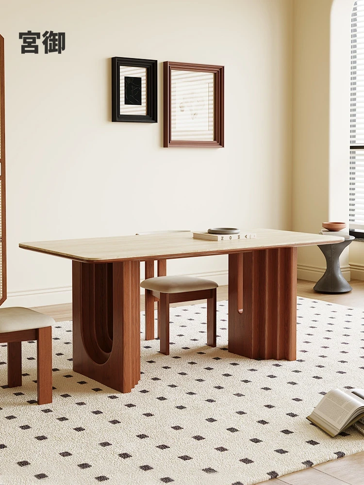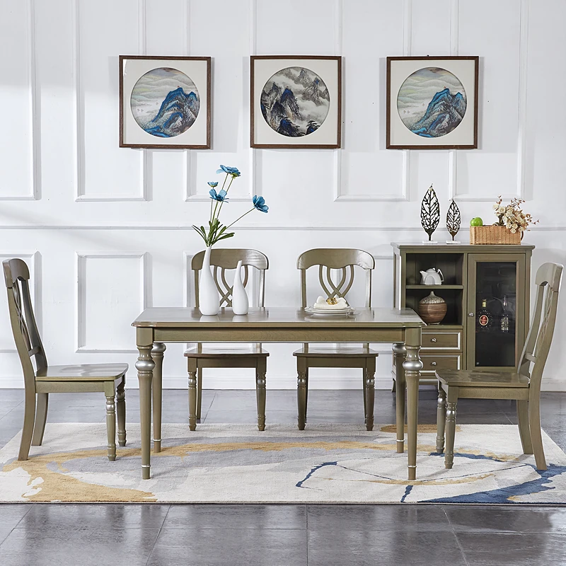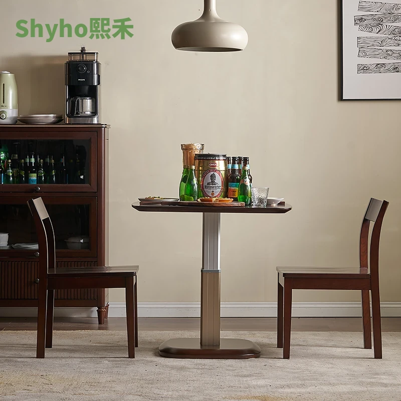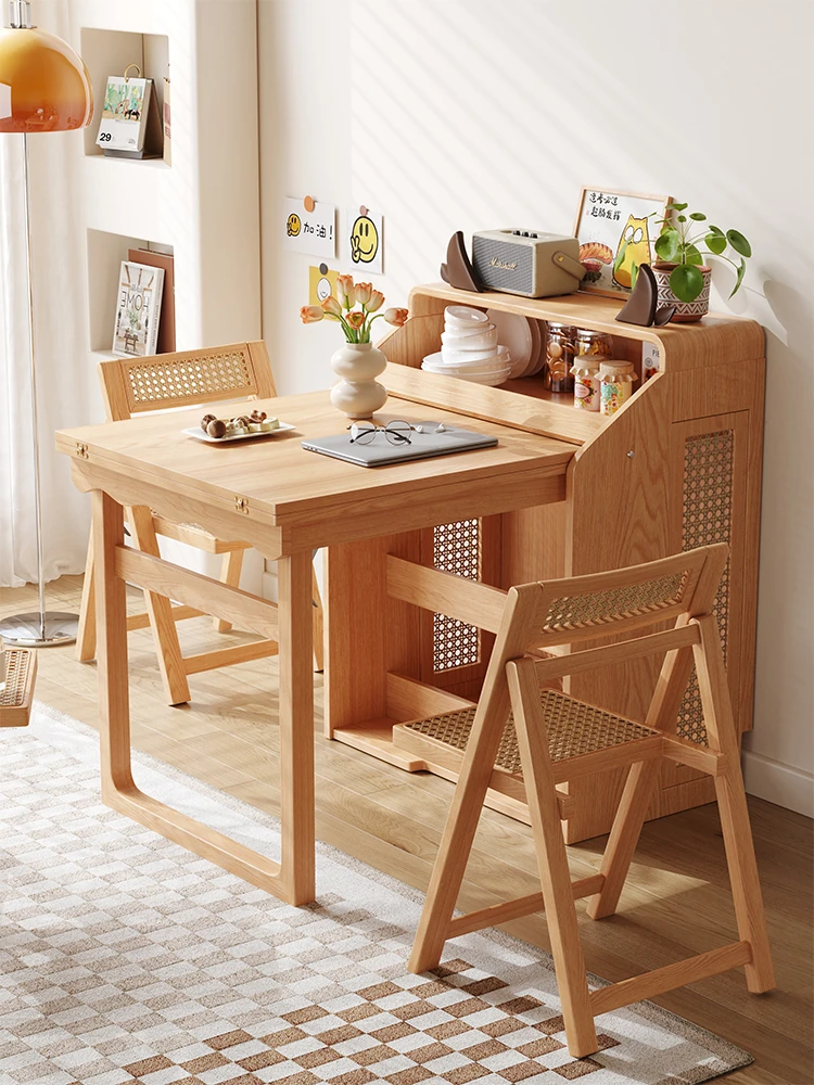 HEウッドハウスの無垢材折りたたみテーブル&チェアセット - 小型アパートに最適!多機能な無垢材サイドボード一体型で、収納も便利!家族の団らんを楽しく彩る理想のアイテムです。
