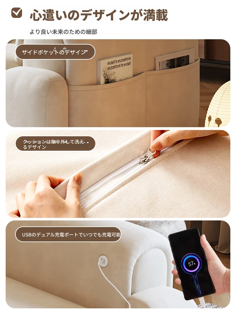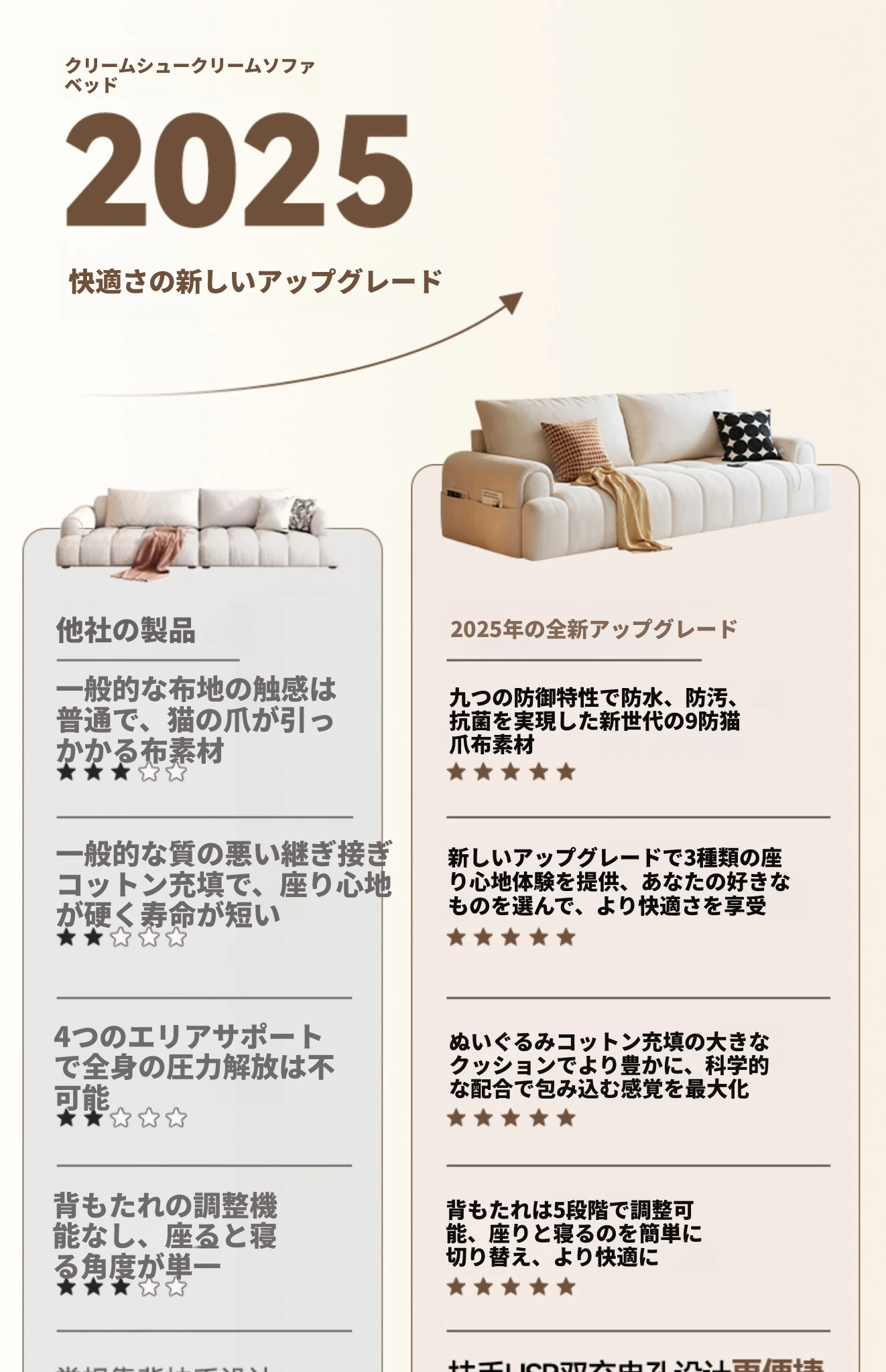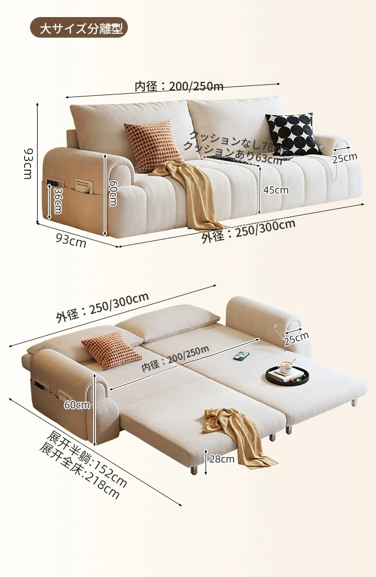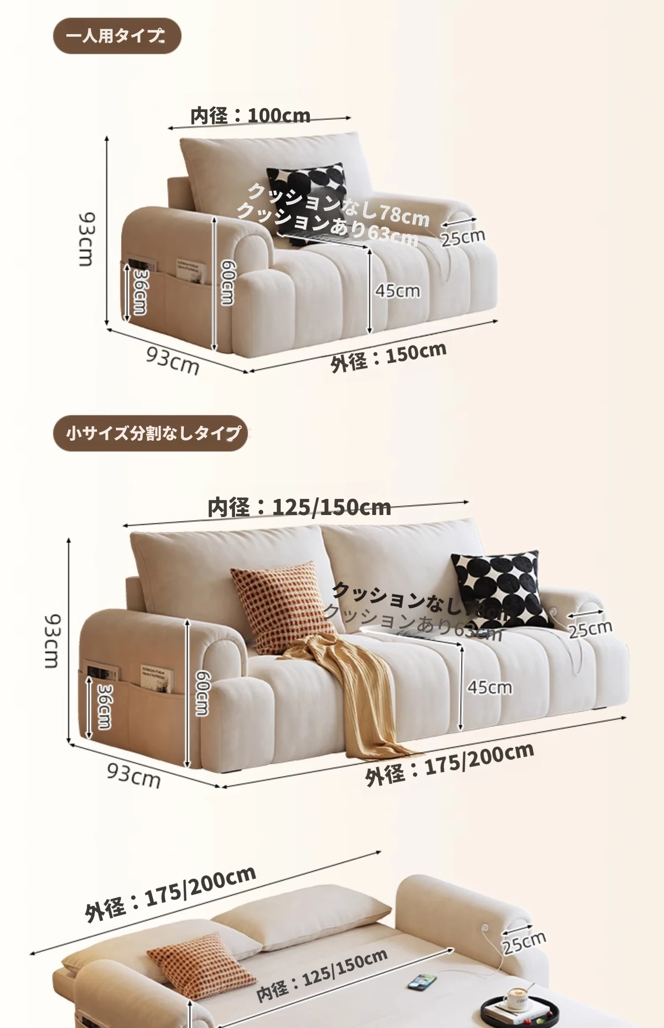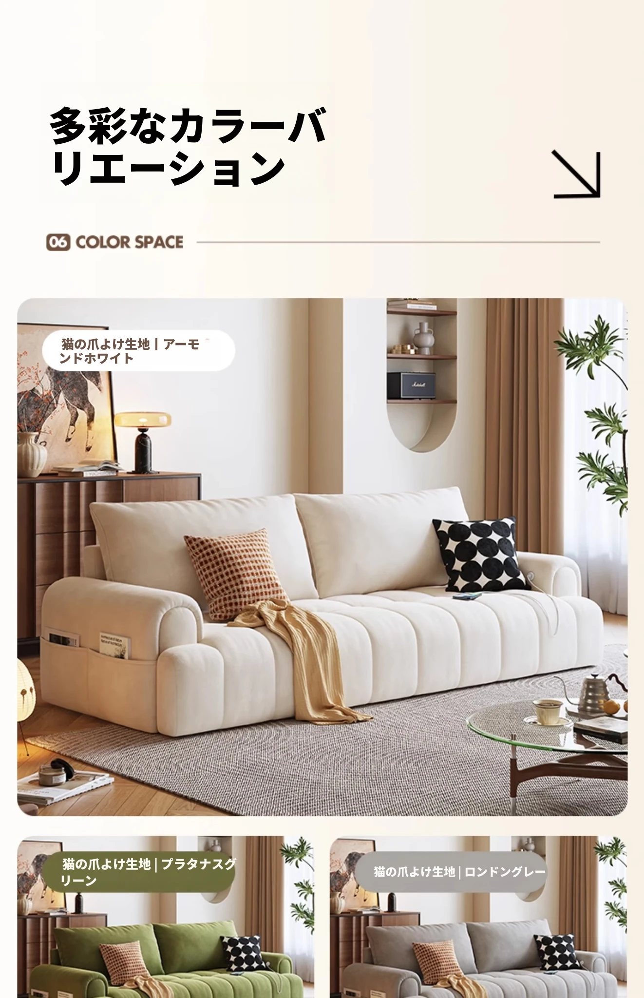 (9抗菌猫抓布)2.75mポフソファベッド【無粉スポンジタイプ】 分体