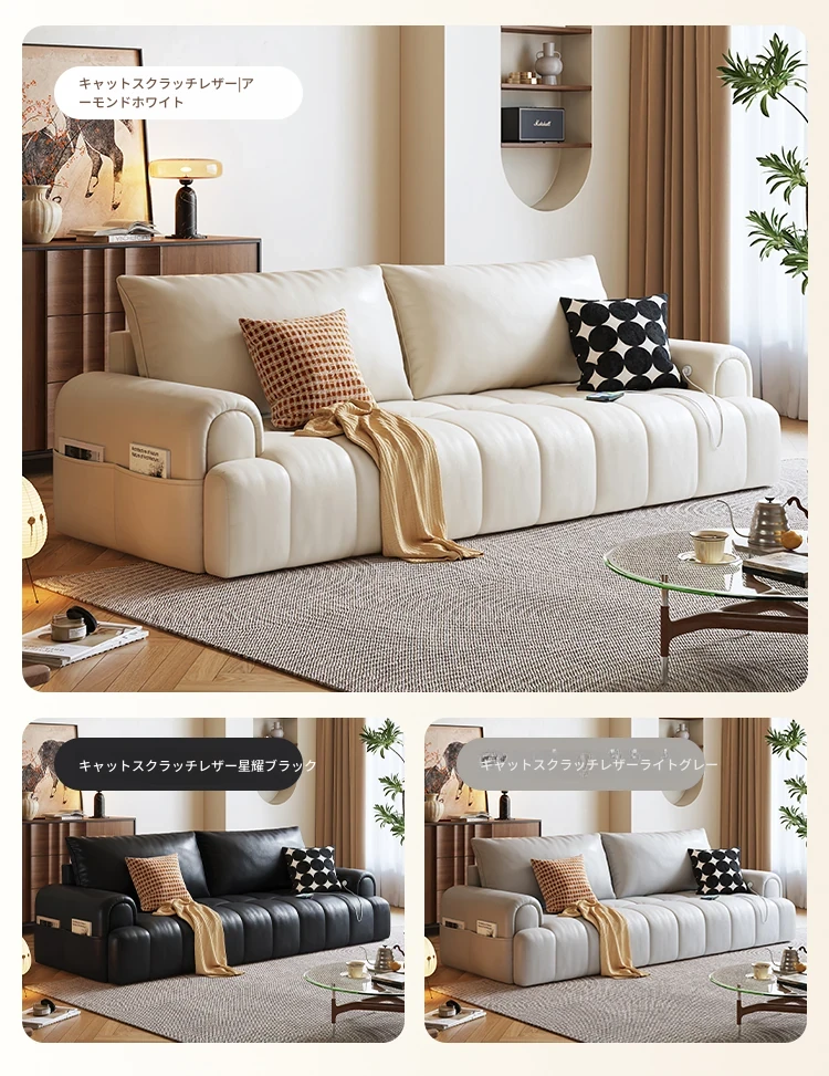(エコ猫爪皮)2.3mポフソファベッド【無粉スポンジタイプ】