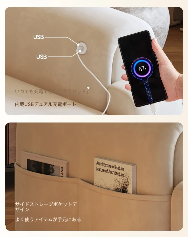 (エコ猫爪皮)3mポフソファベッド【無粉スポンジタイプ】 分体