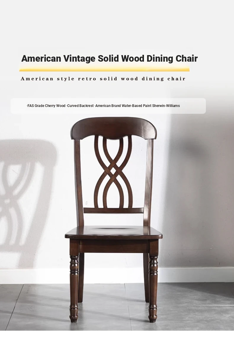 Modern Solid Wood Dining Chair - Luxurious Casual Office and Study Chair, American High-Back Vintage Stool by Xihe Furniture. Perfect blend of style and comfort for your space!