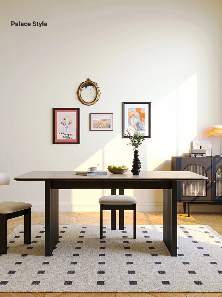 Vintage French Style Dining Table and Chairs Set for Small Spaces - Black Solid Wood, Wabi-Sabi Aesthetic, Perfect for Cozy Homes and Wall-Mounted Dining Areas.