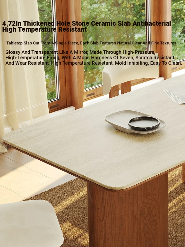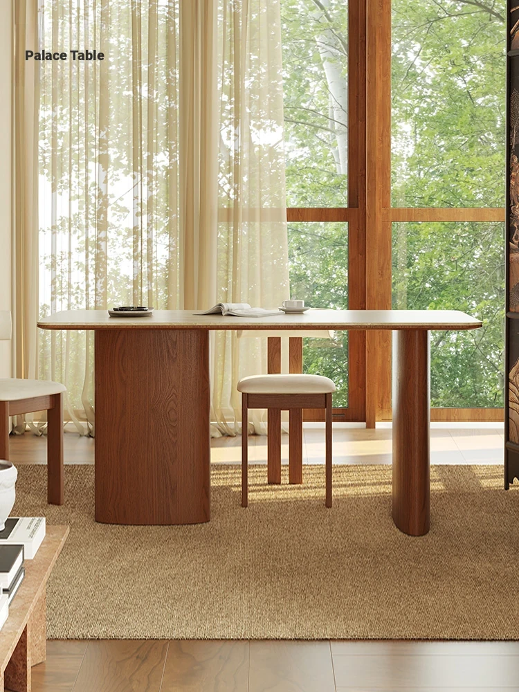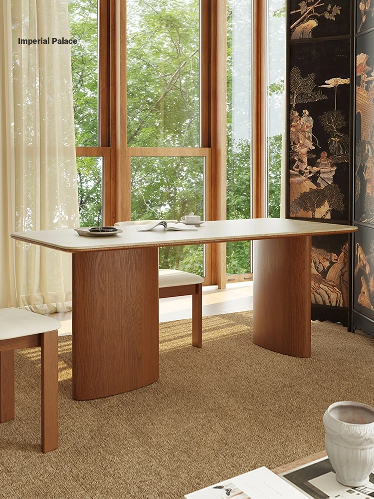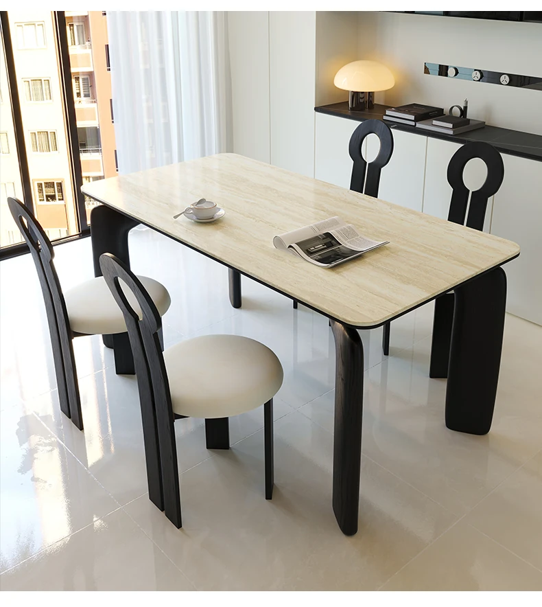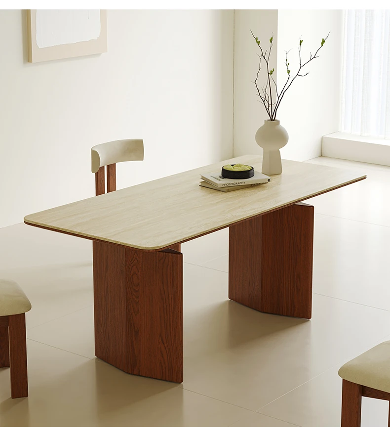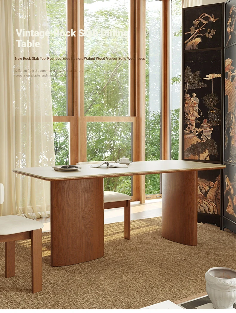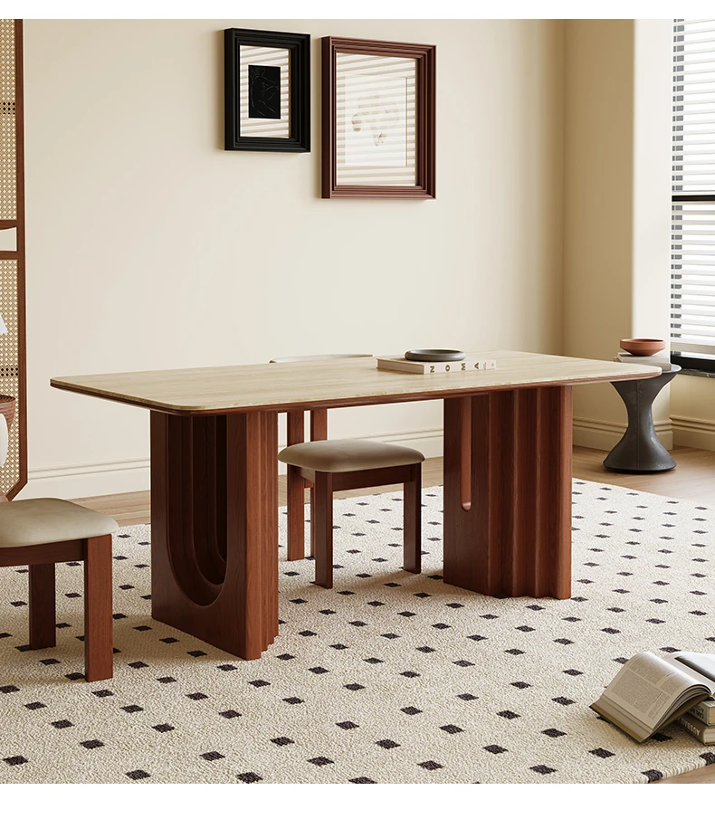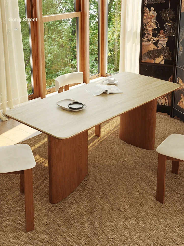 Vintage French-style Solid Wood Dining Table with Cavernous Stone Top - Perfect for Cozy Living Spaces, Made from Ash Wood, Ideal for Home Use and Small Apartments