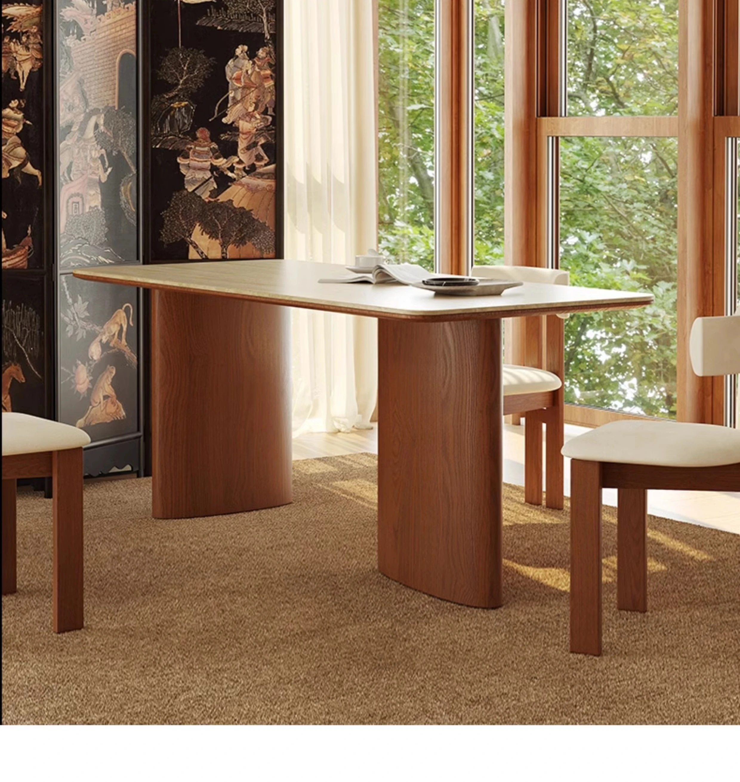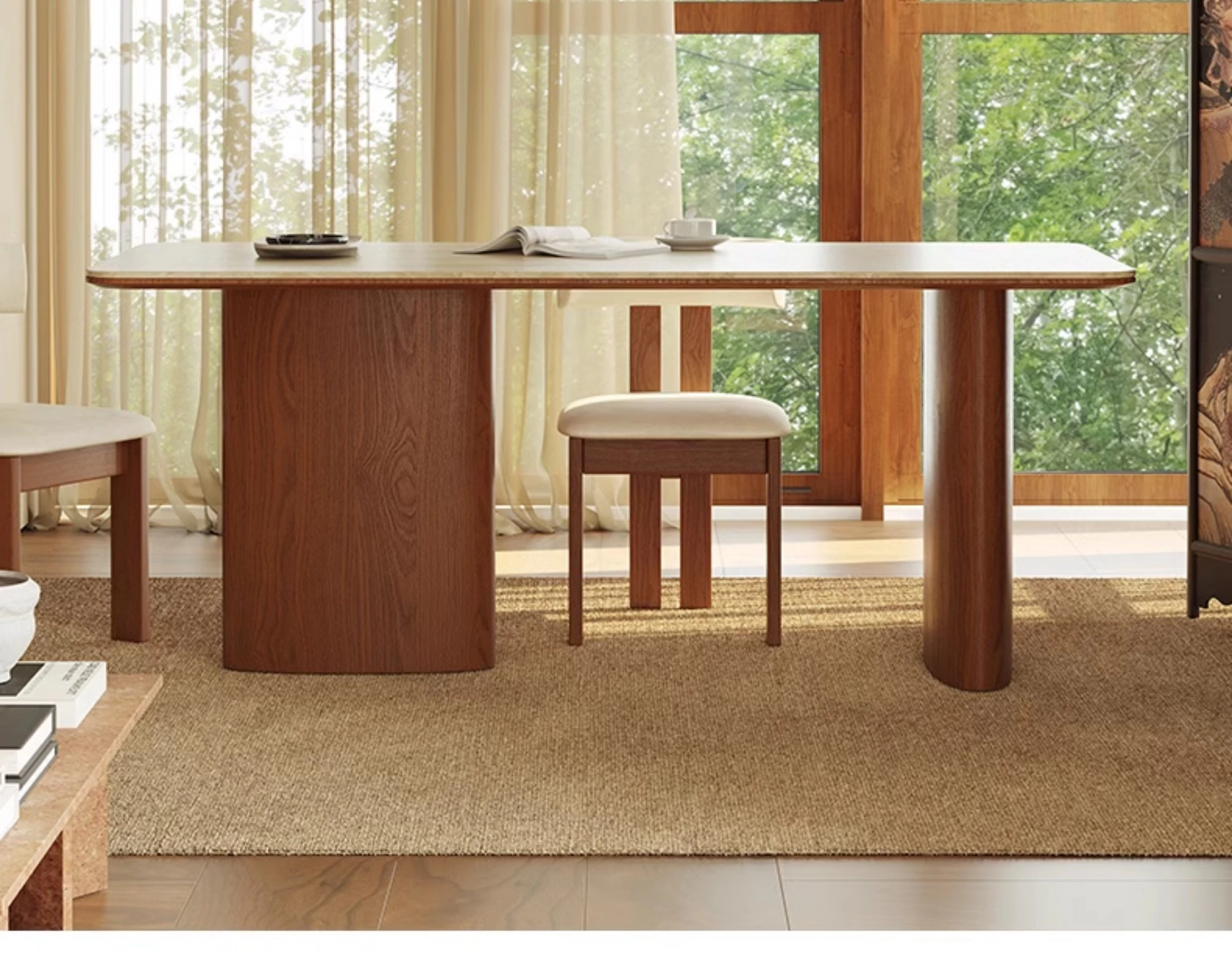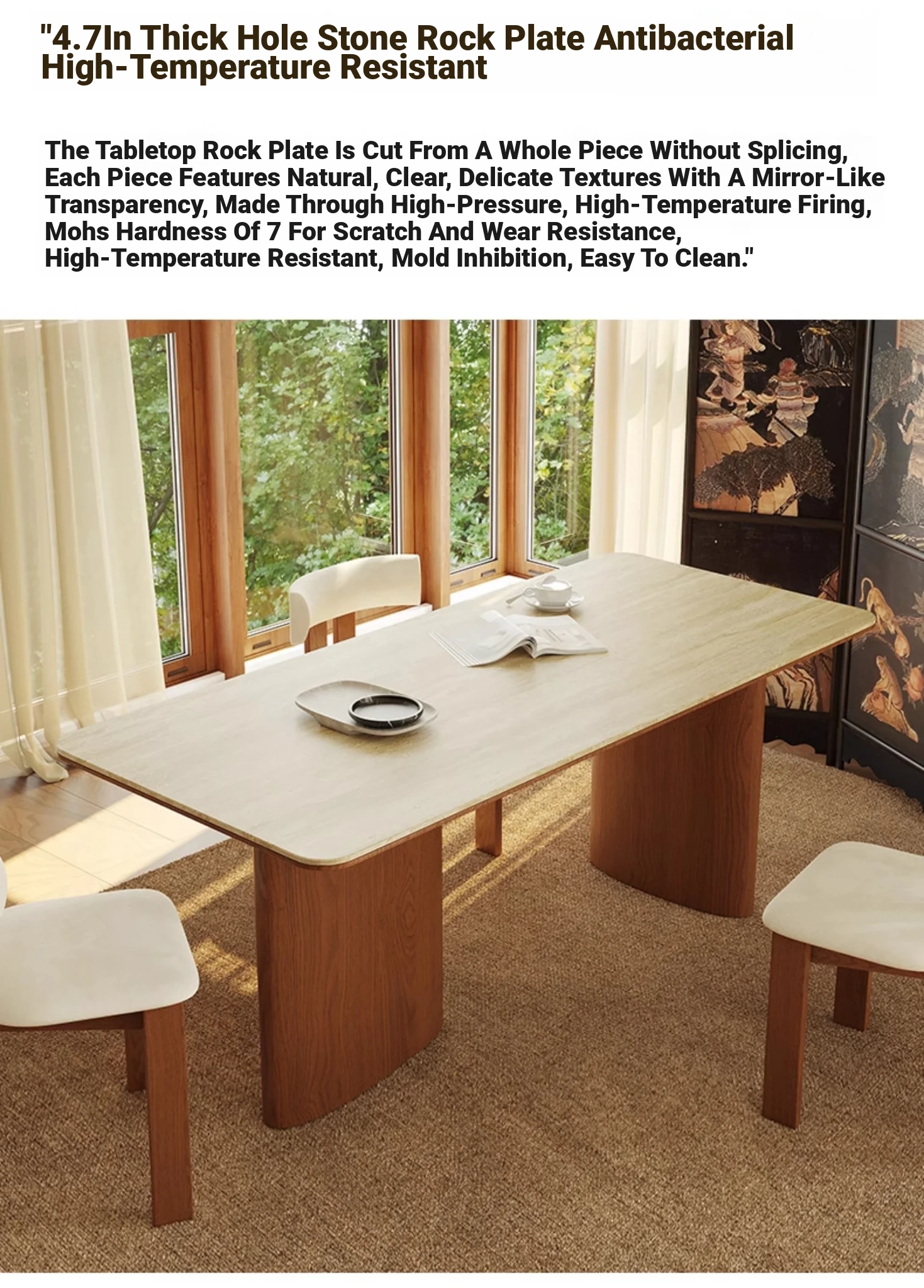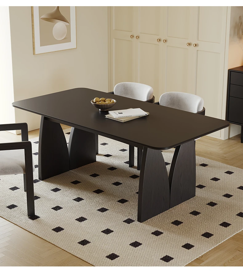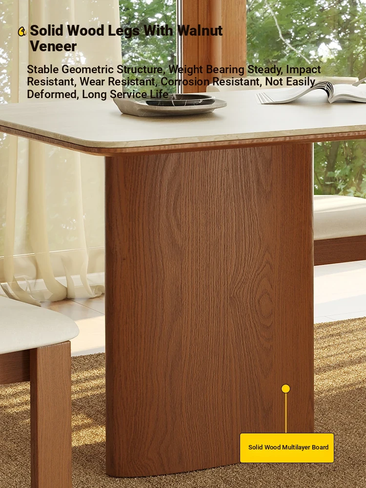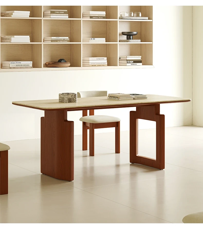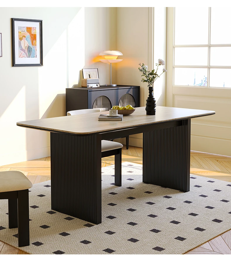 Vintage French-style Solid Wood Dining Table with Cavernous Stone Top - Perfect for Cozy Living Spaces, Made from Ash Wood, Ideal for Home Use and Small Apartments