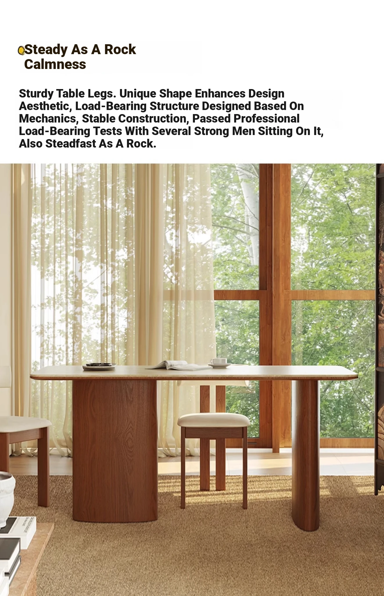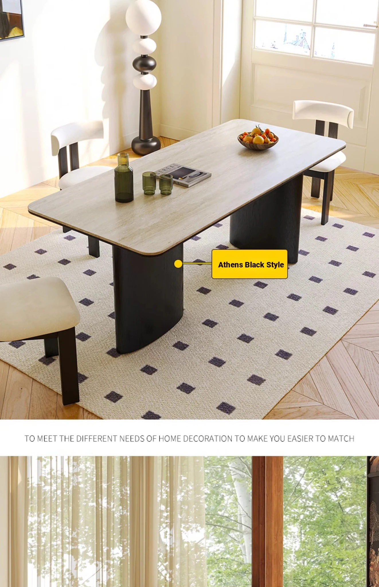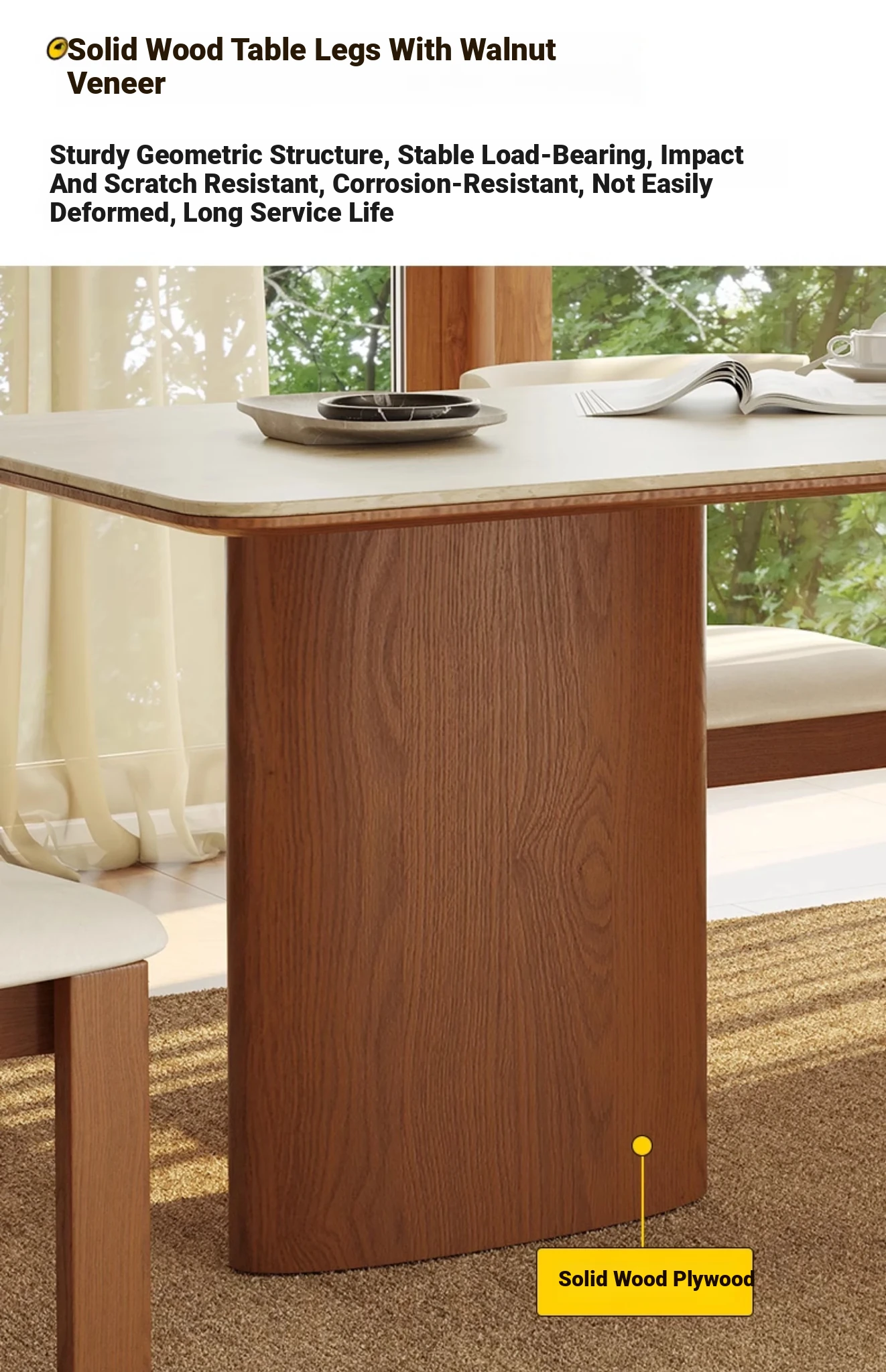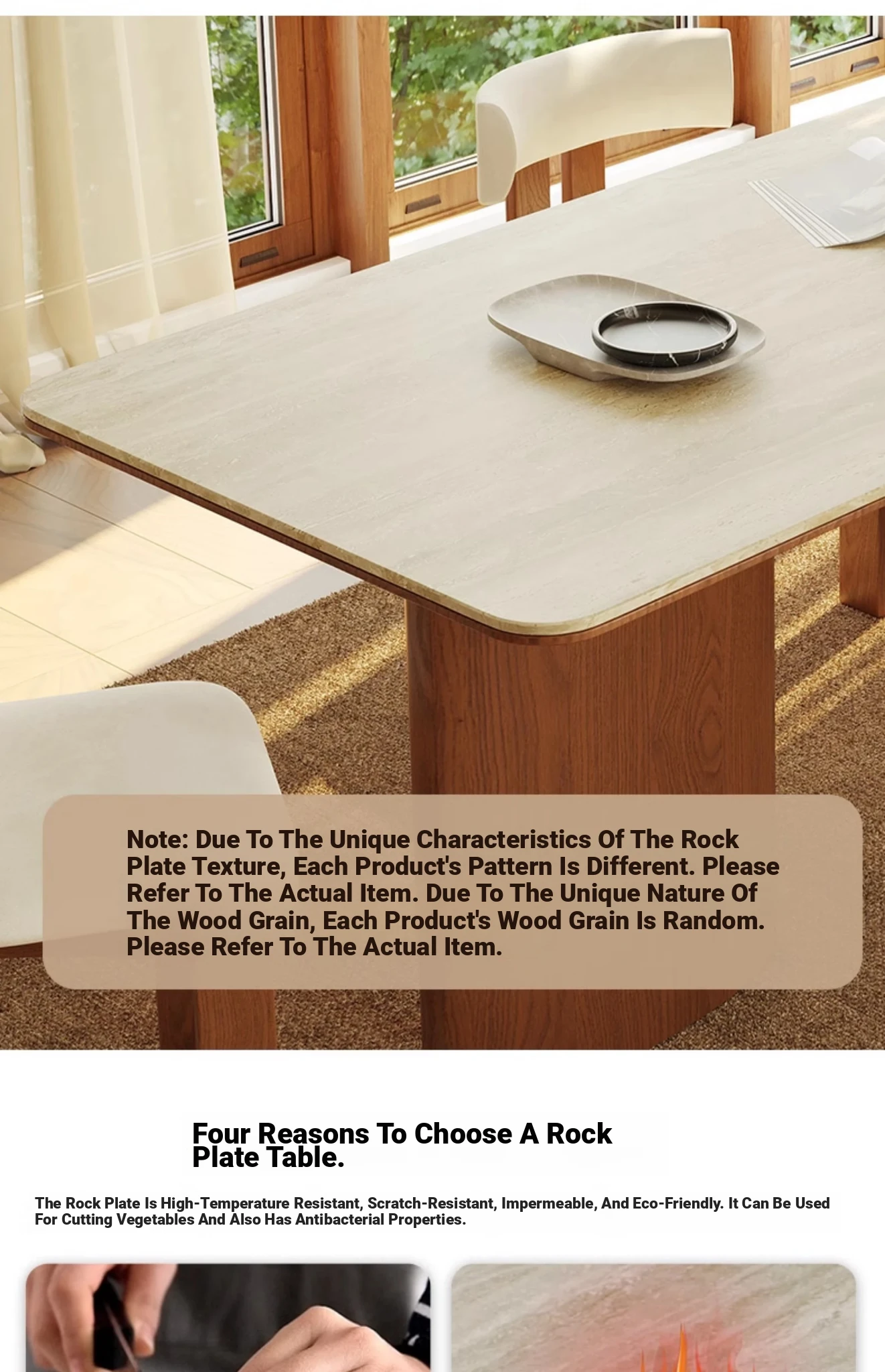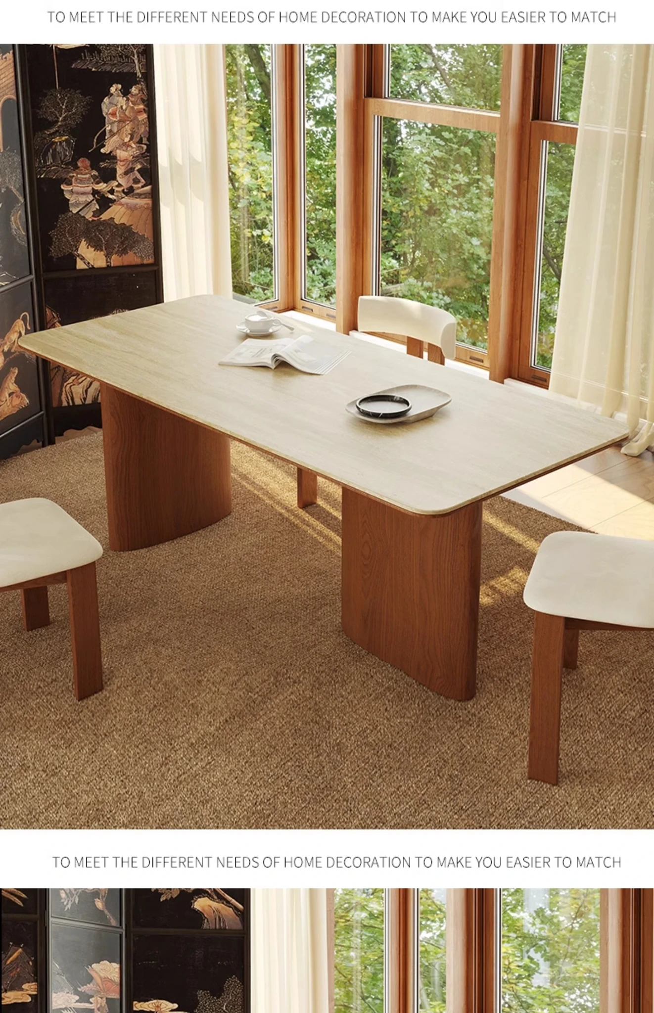 Vintage French-style Solid Wood Dining Table with Cavernous Stone Top - Perfect for Cozy Living Spaces, Made from Ash Wood, Ideal for Home Use and Small Apartments