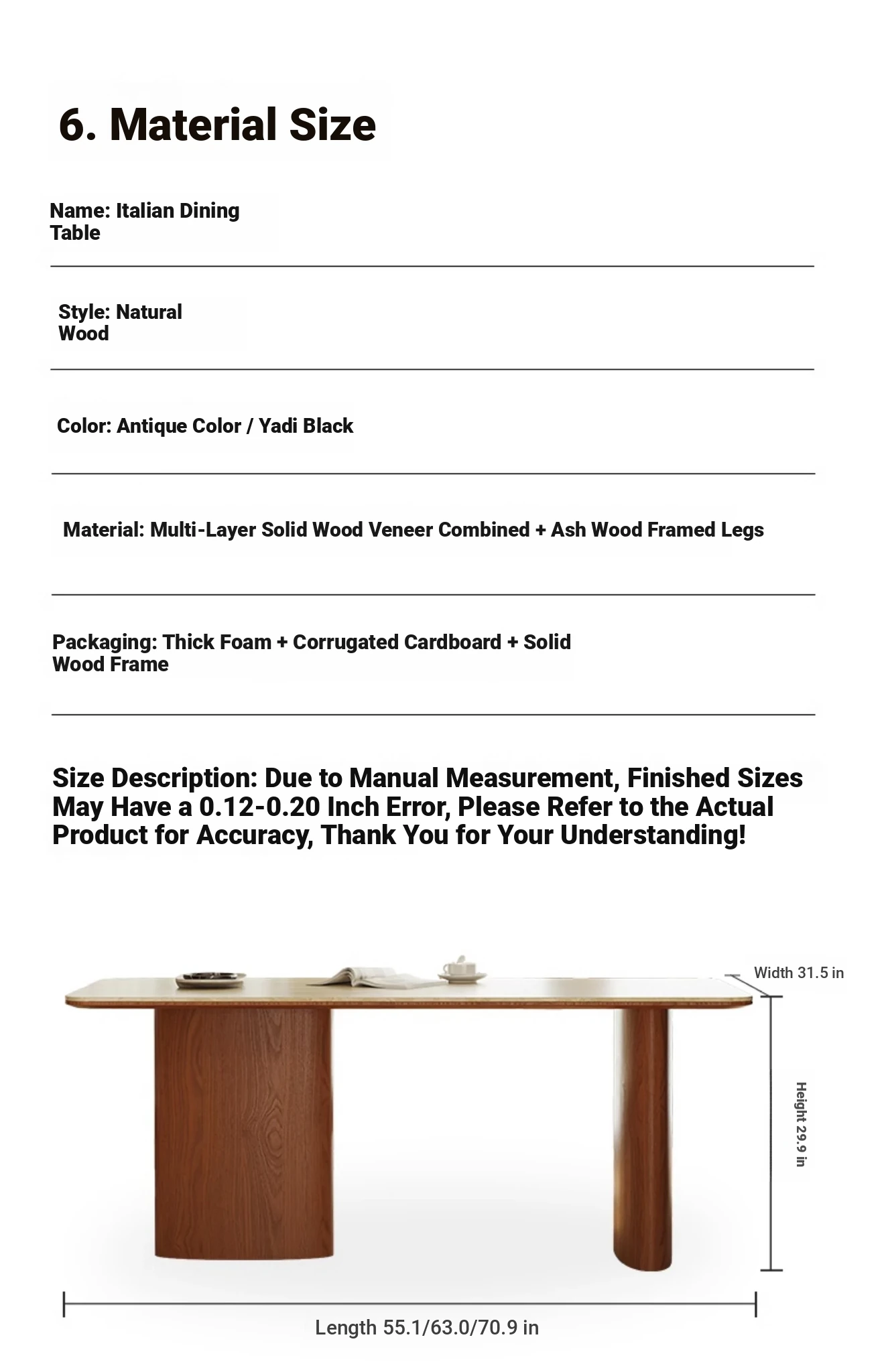 70.87 ins dining table