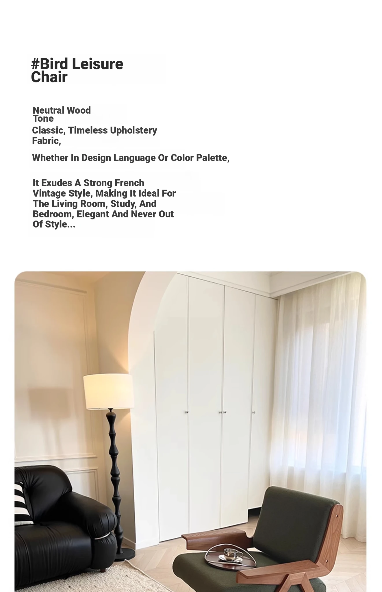 Vintage Royal Bird Chair - Retro Single Sofa for Stylish Homes, Designer Solid Wood Armchair with Backrest, Perfect for Guesthouses and Living Rooms, Embrace the Classic Aesthetic!