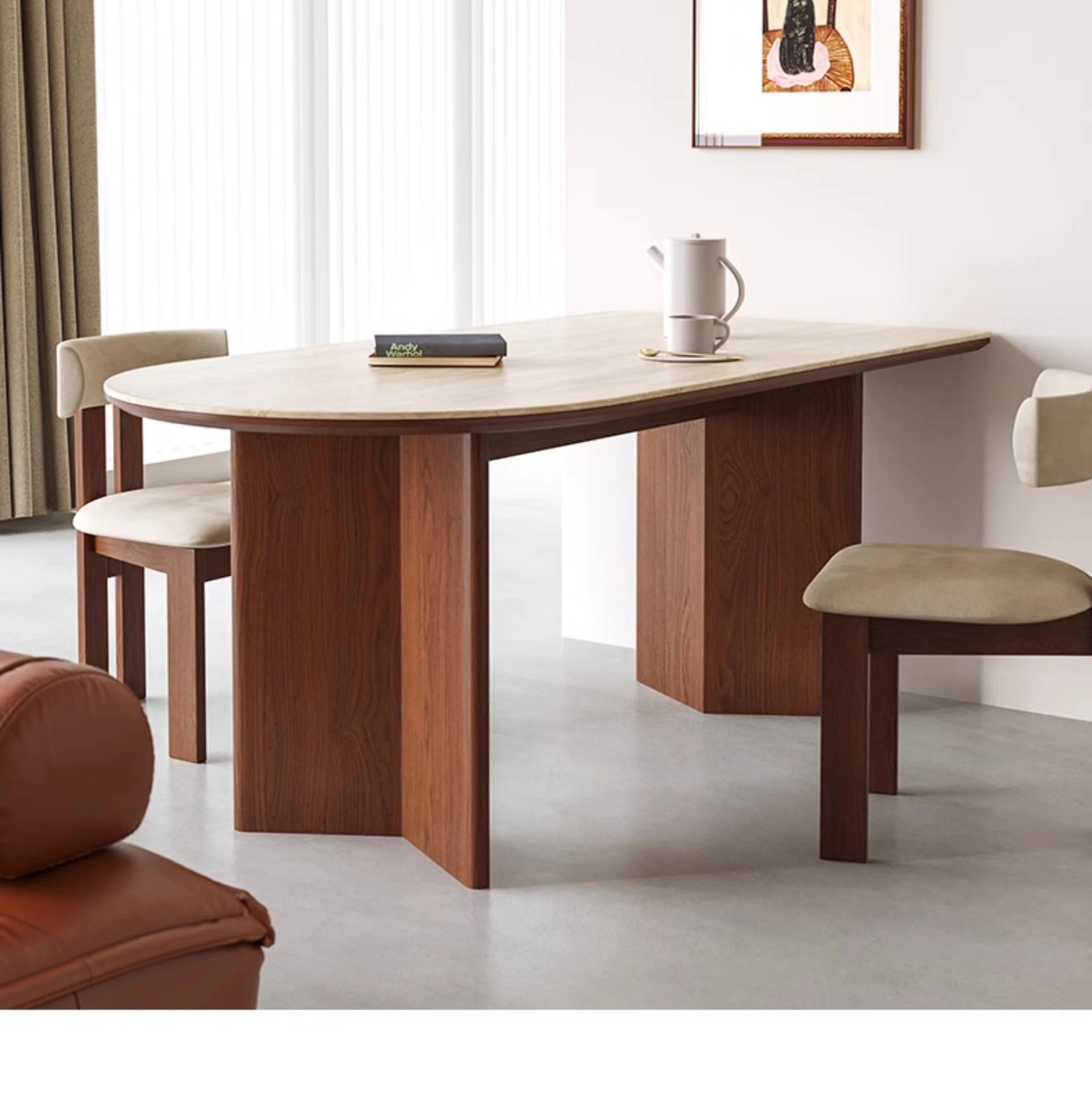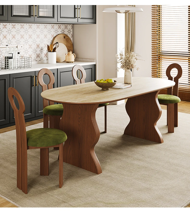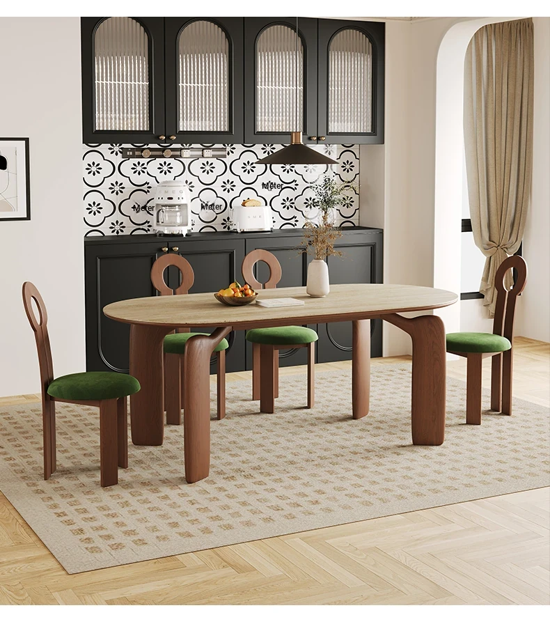 Vintage Scandinavian Solid Wood V-Shaped Dining Table Set – Oval Mid-Century Style for Small Living Spaces, Perfect for Cozy Dining Experiences