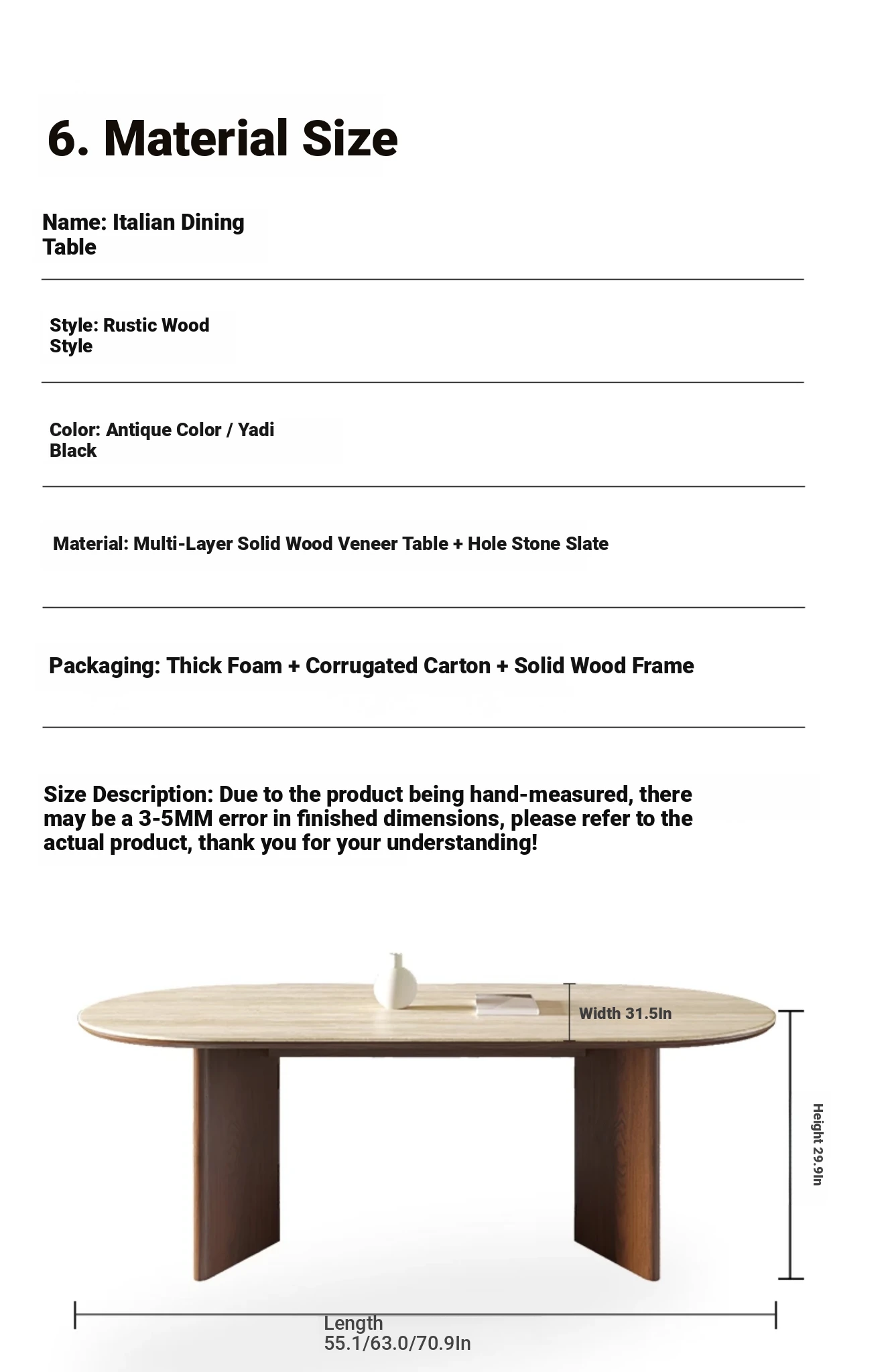 V-shaped dining table-medium and antique-[70.87 in]]