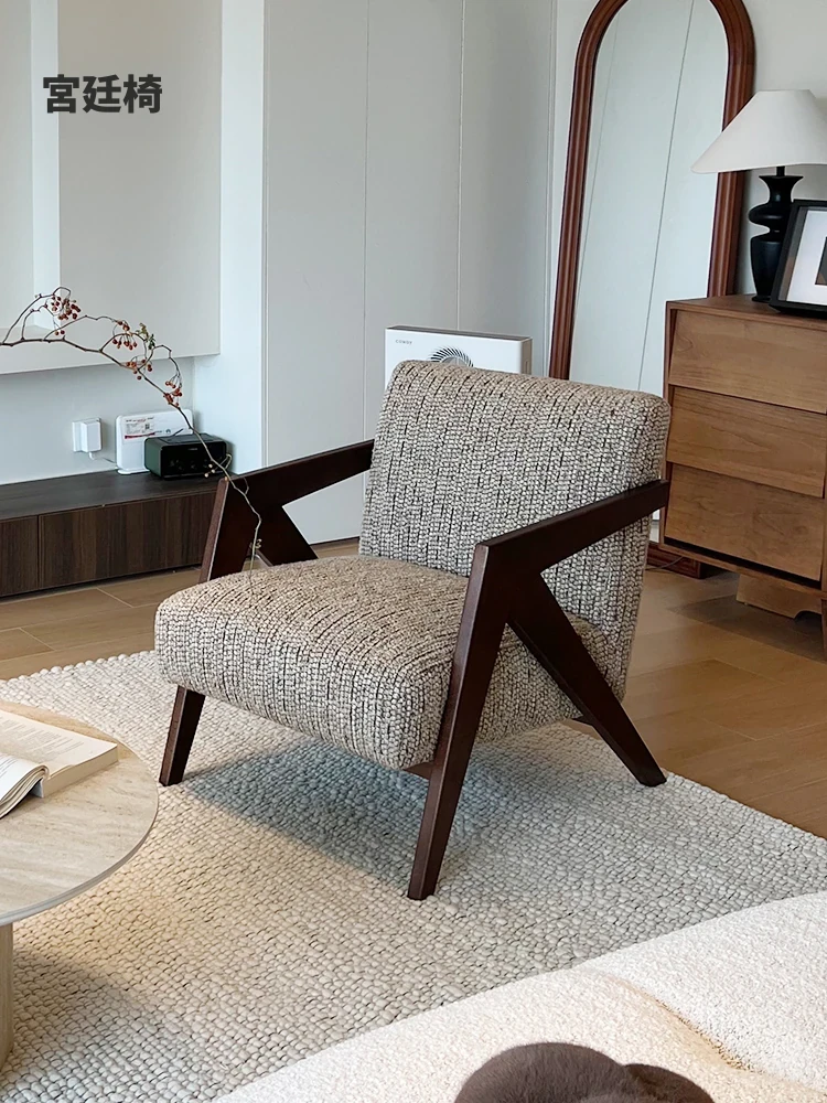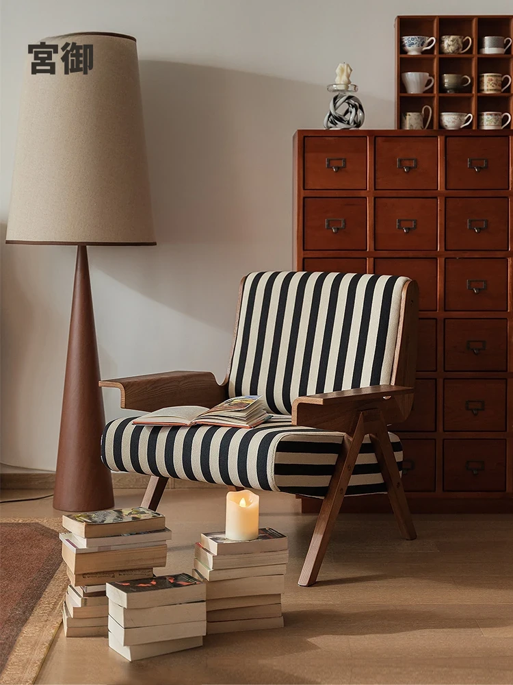 宮御ゼブラチェア - レトロな一人掛けソファ、インスタ映えする民宿やリビングに最適!中古風デザインの職人による実木背もたれチェア。快適さとスタイルを兼ね備えた一品!