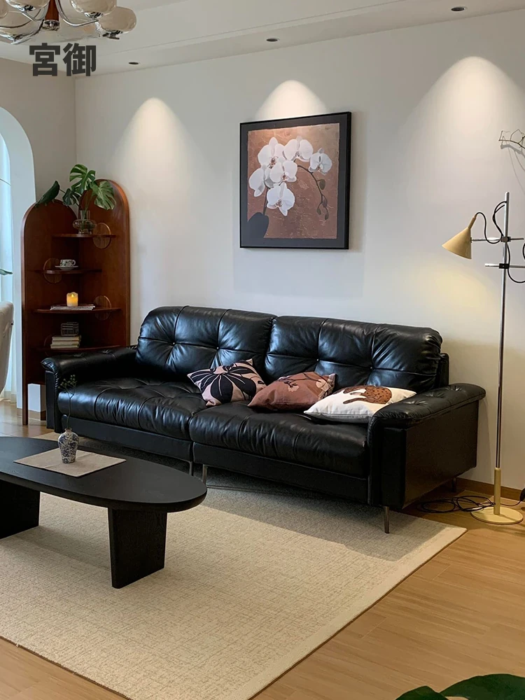 2024年新作 フランス風レトロスタイル 星雲デザイン 本革 ソファー 高級牛革 小型リビング向け 直線タイプ 家具